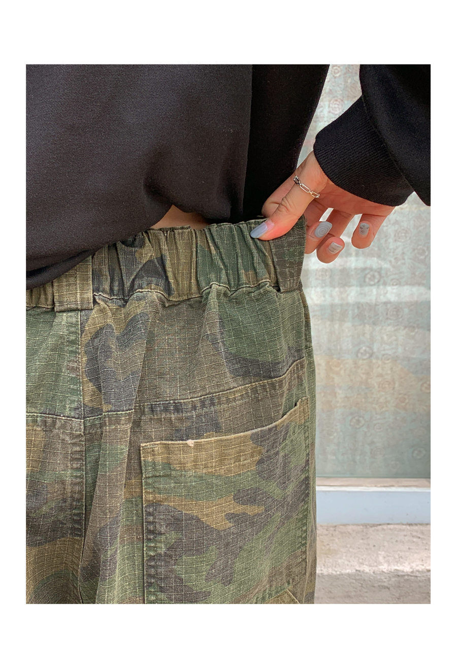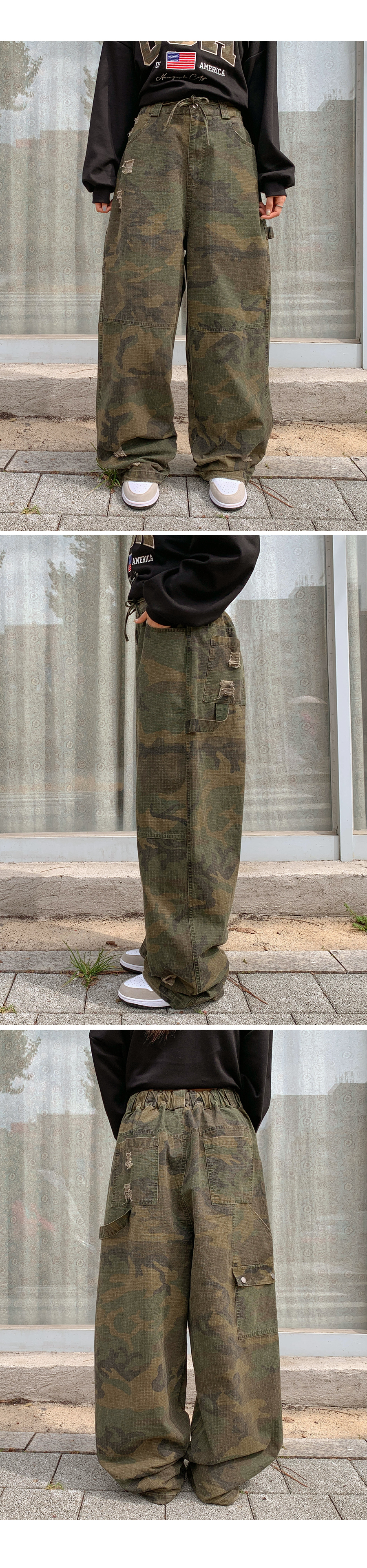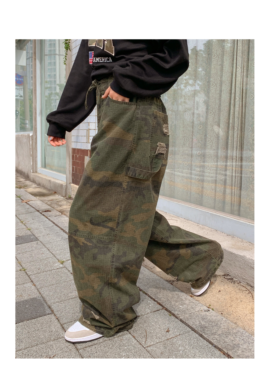 [男女共用]ローブダメージカーフェンダーカモストリングワイドパンツ