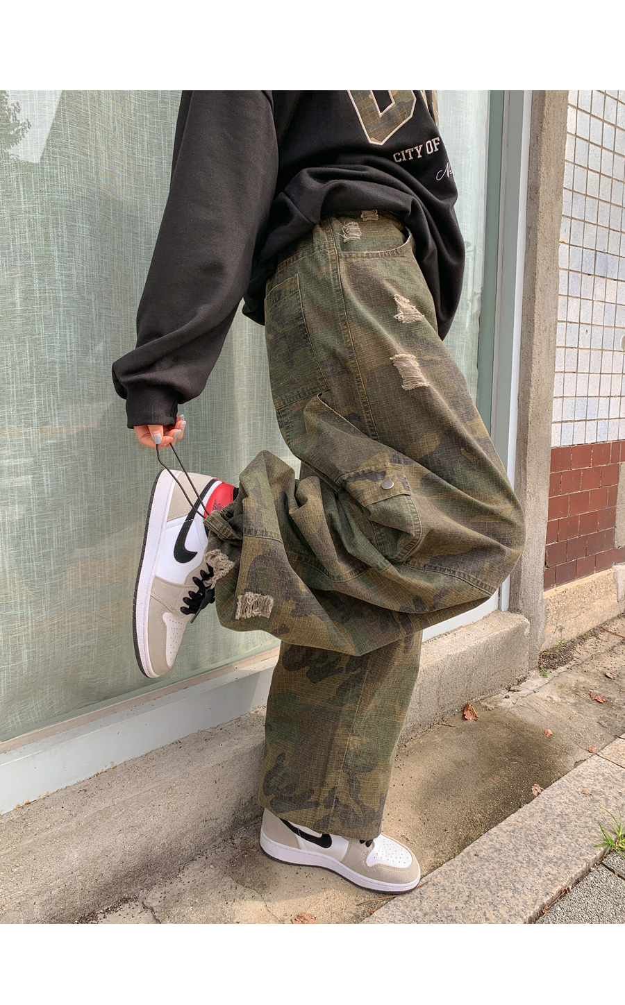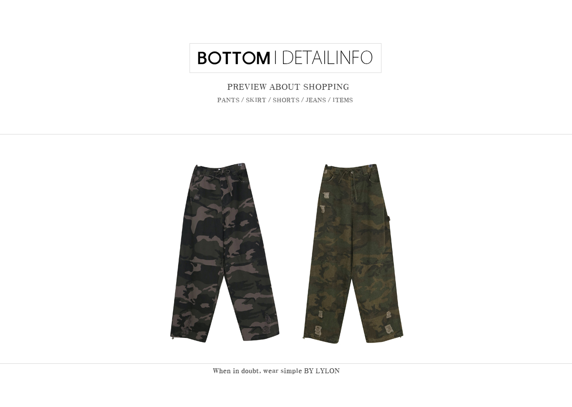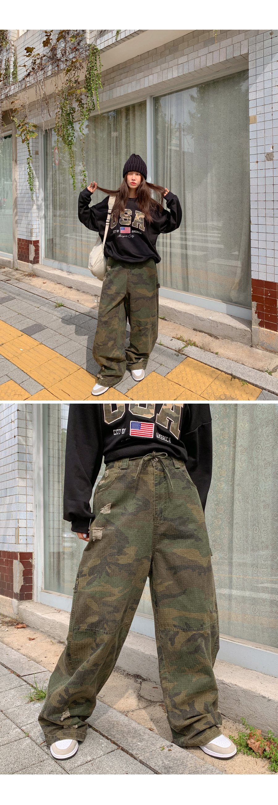 [男女共用]ローブダメージカーフェンダーカモストリングワイドパンツ