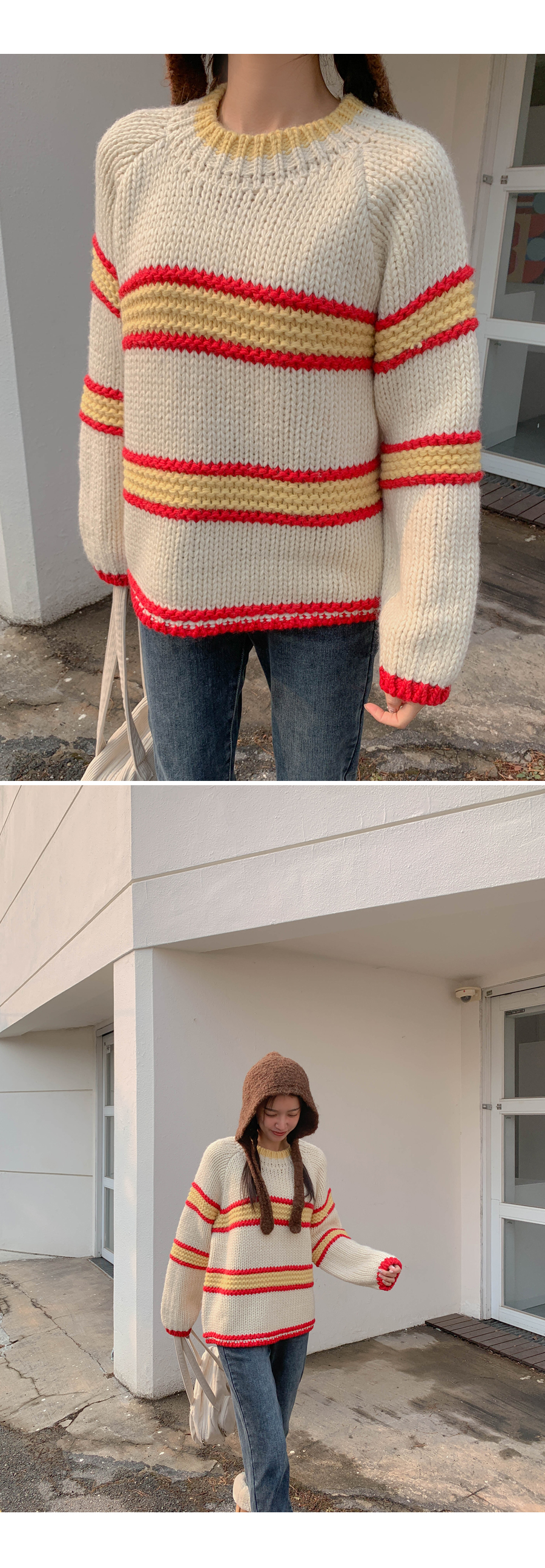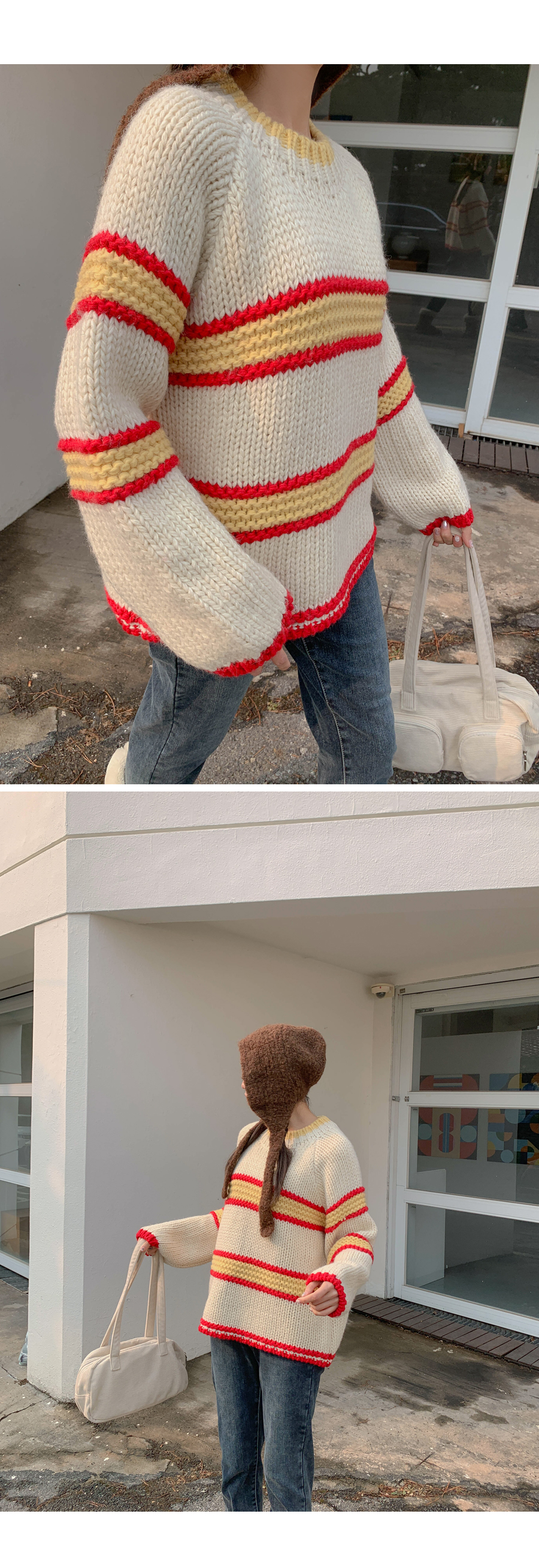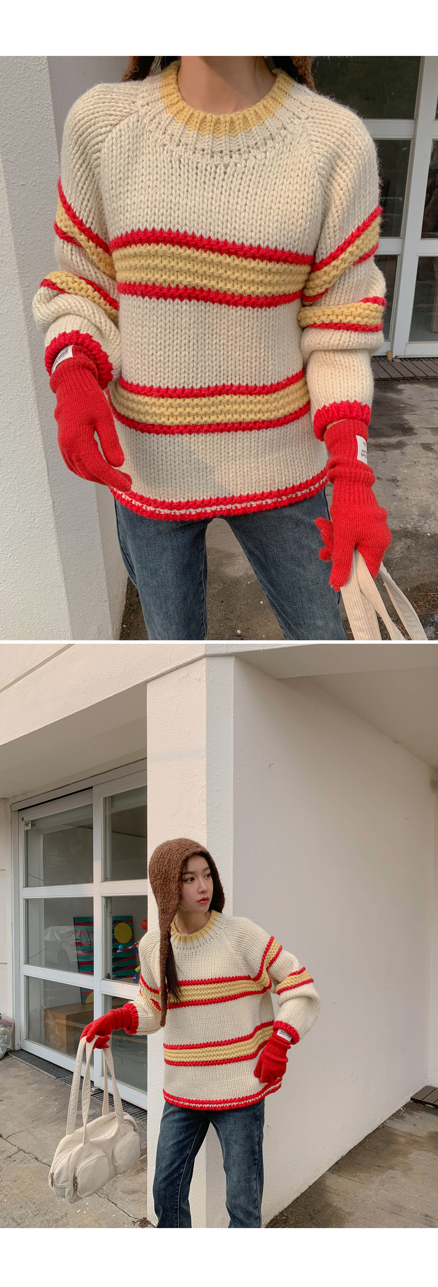 メニス配色 テクスチャ ダンガラ ウールニット