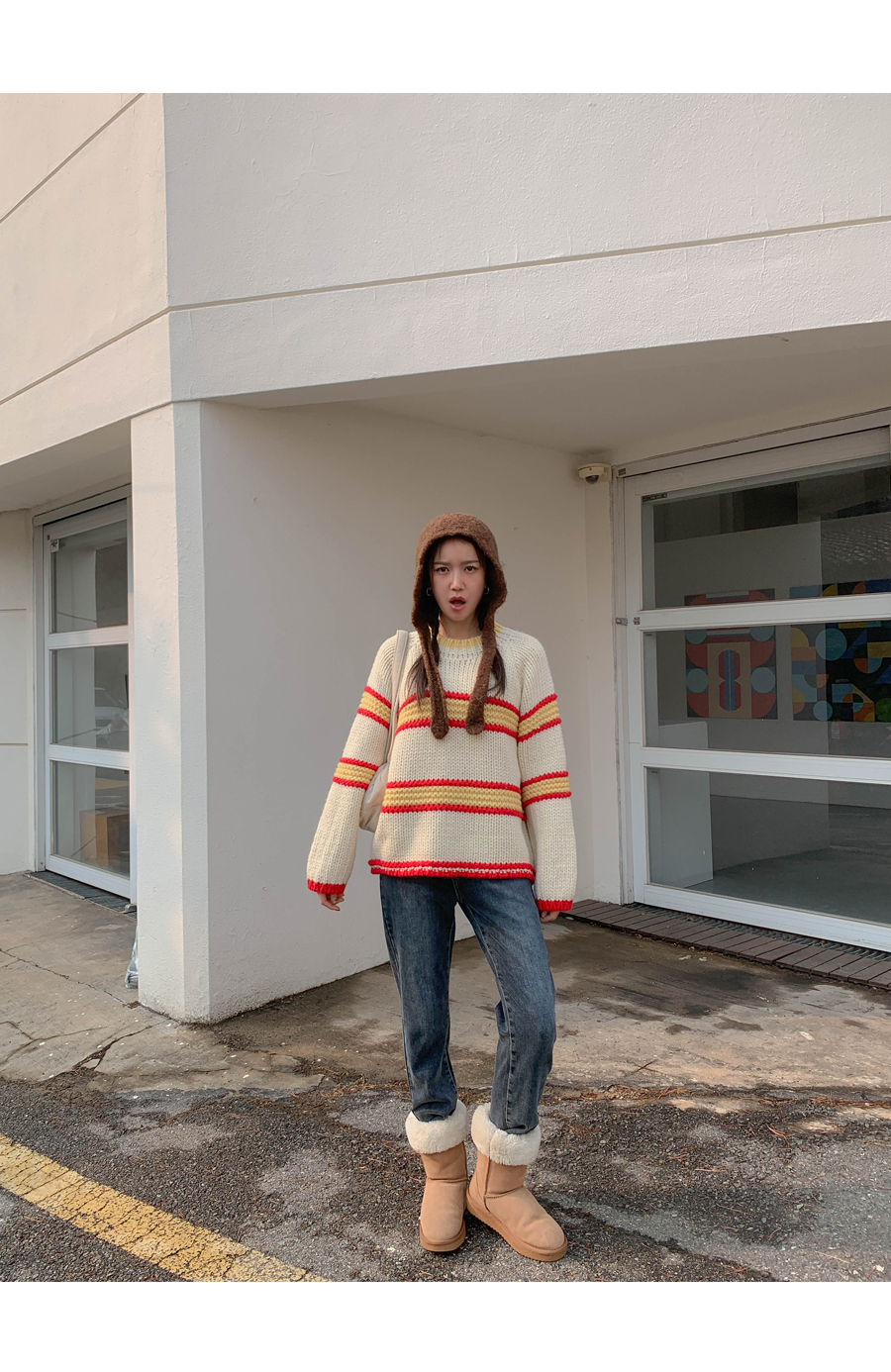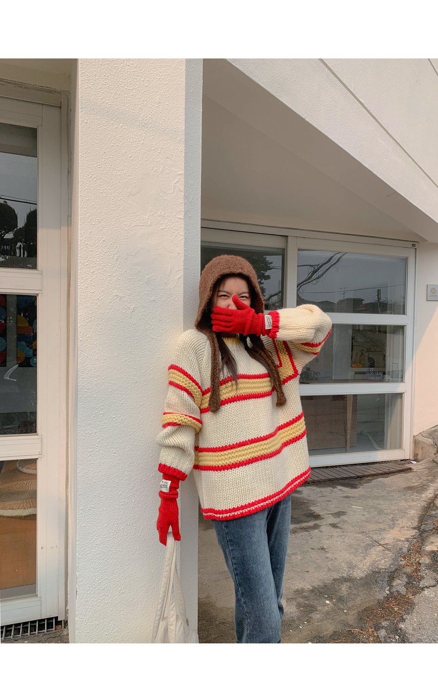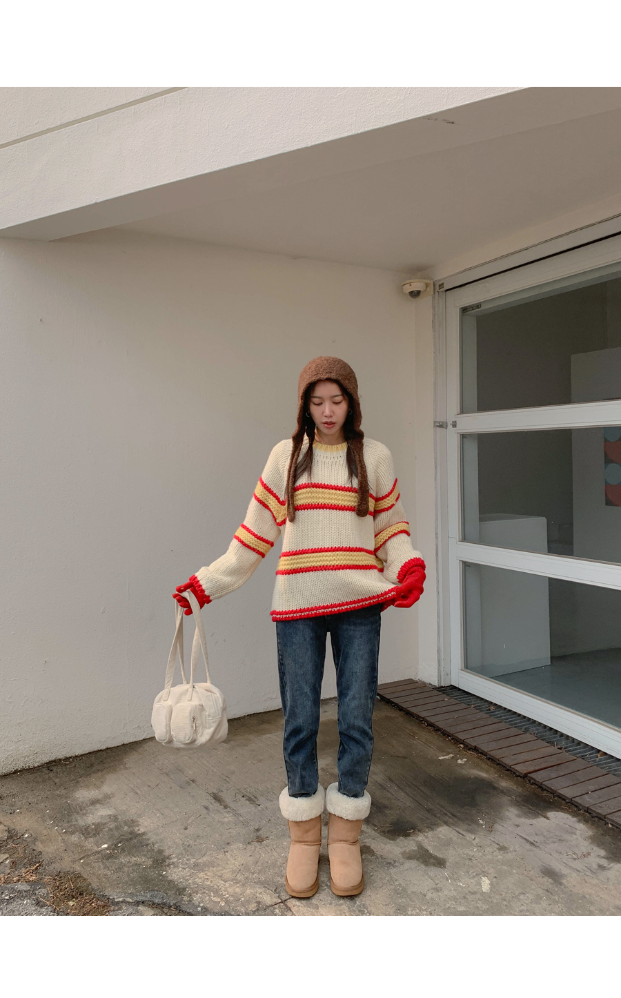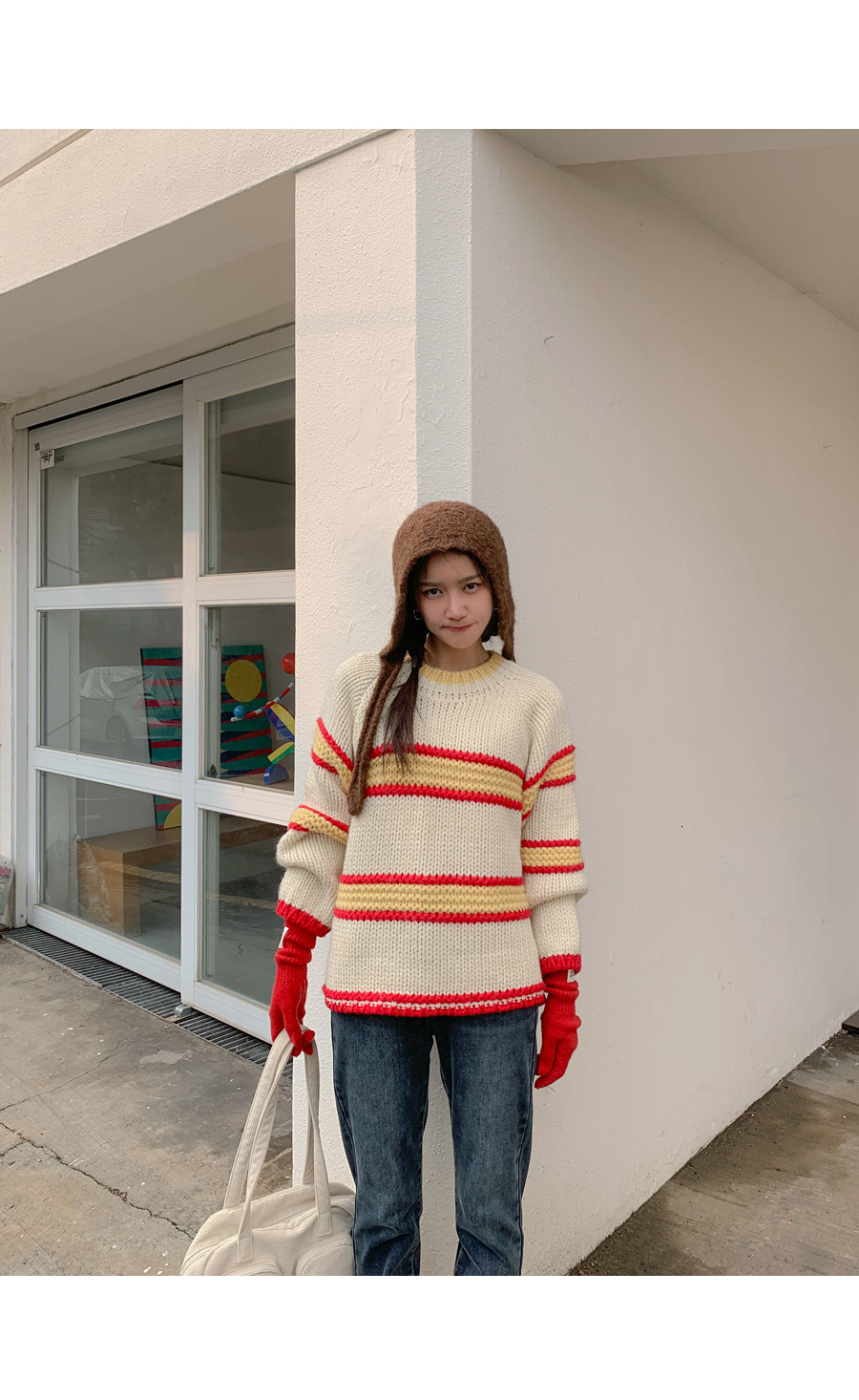 メニス配色 テクスチャ ダンガラ ウールニット