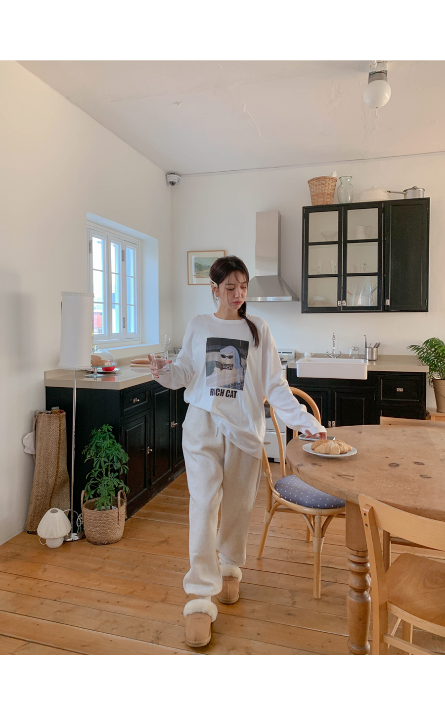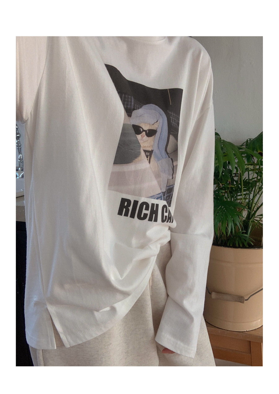 リッチキャットナ塩長袖ティーシャツ