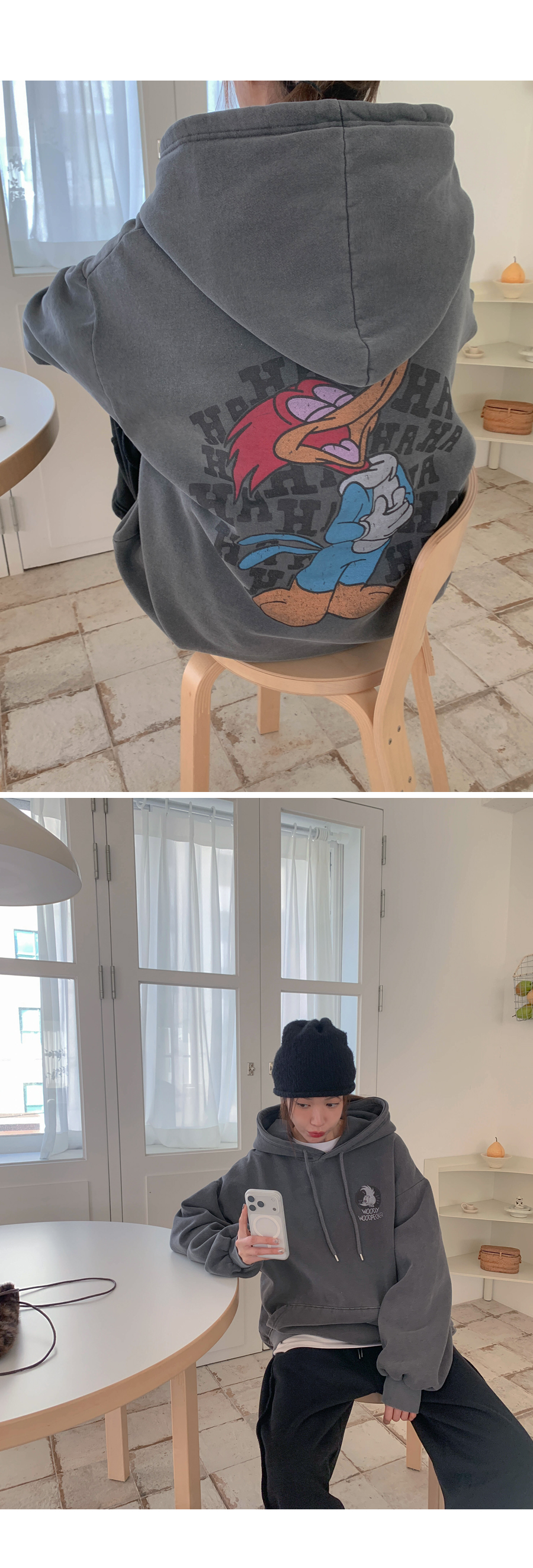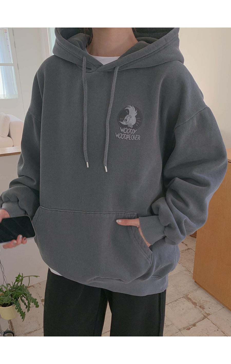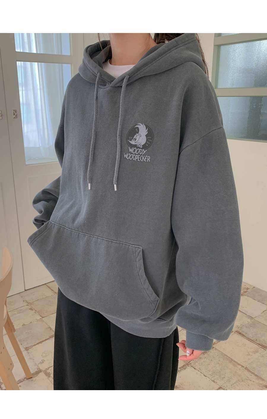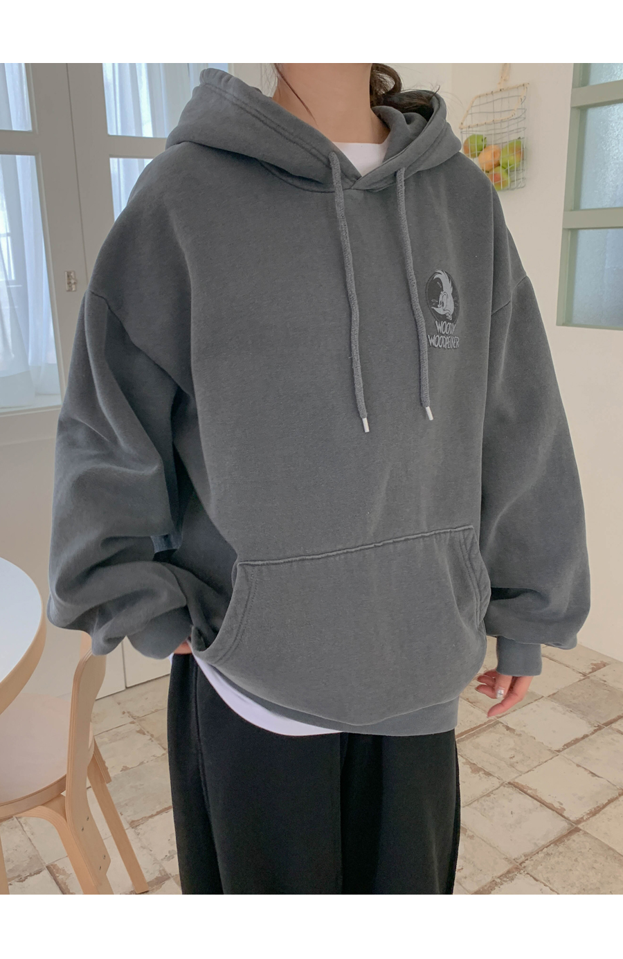 [男女共用]ウッディナ炎ピグメント起毛ロングフードティーシャツ