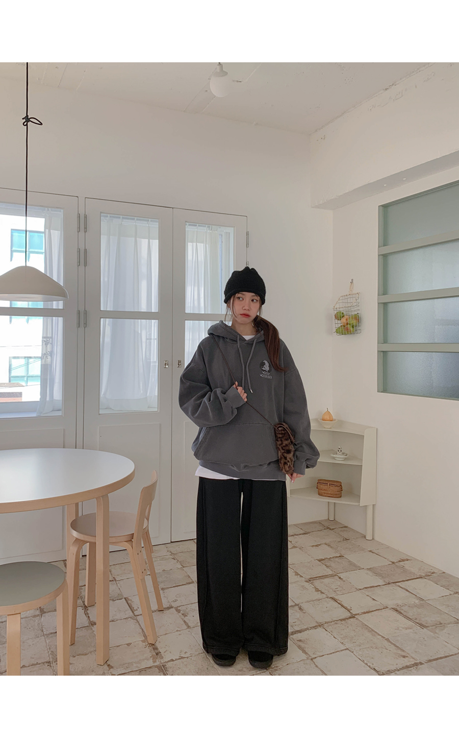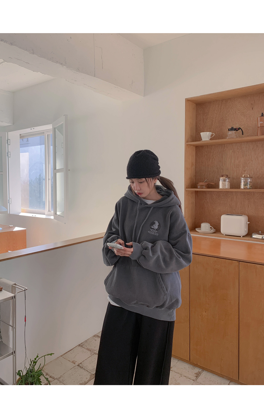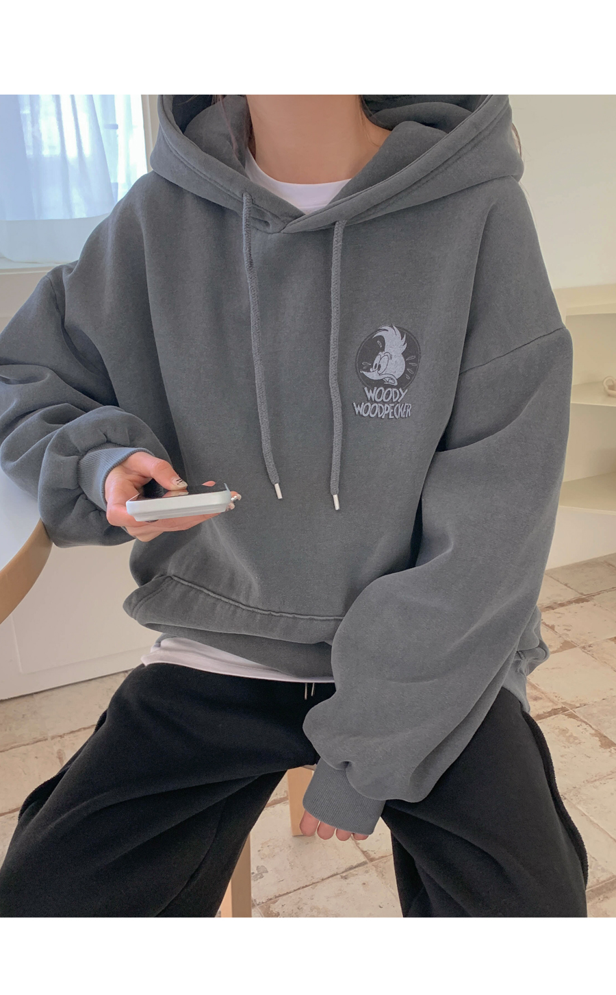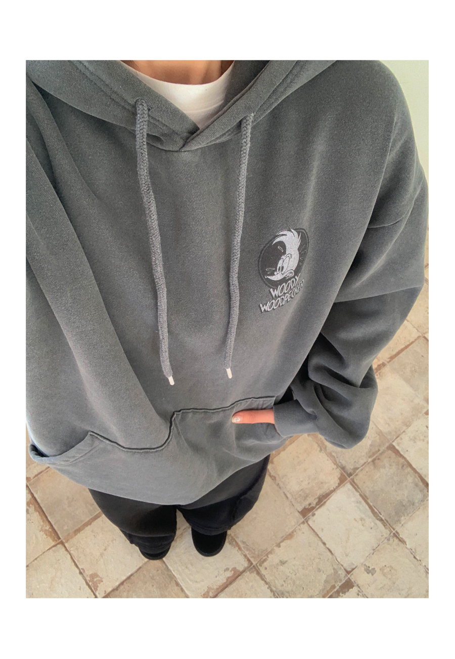 [男女共用]ウッディナ炎ピグメント起毛ロングフードティーシャツ