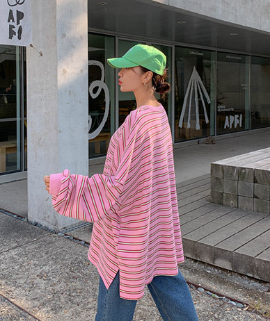 필링 트임 박시 반소데 티셔츠