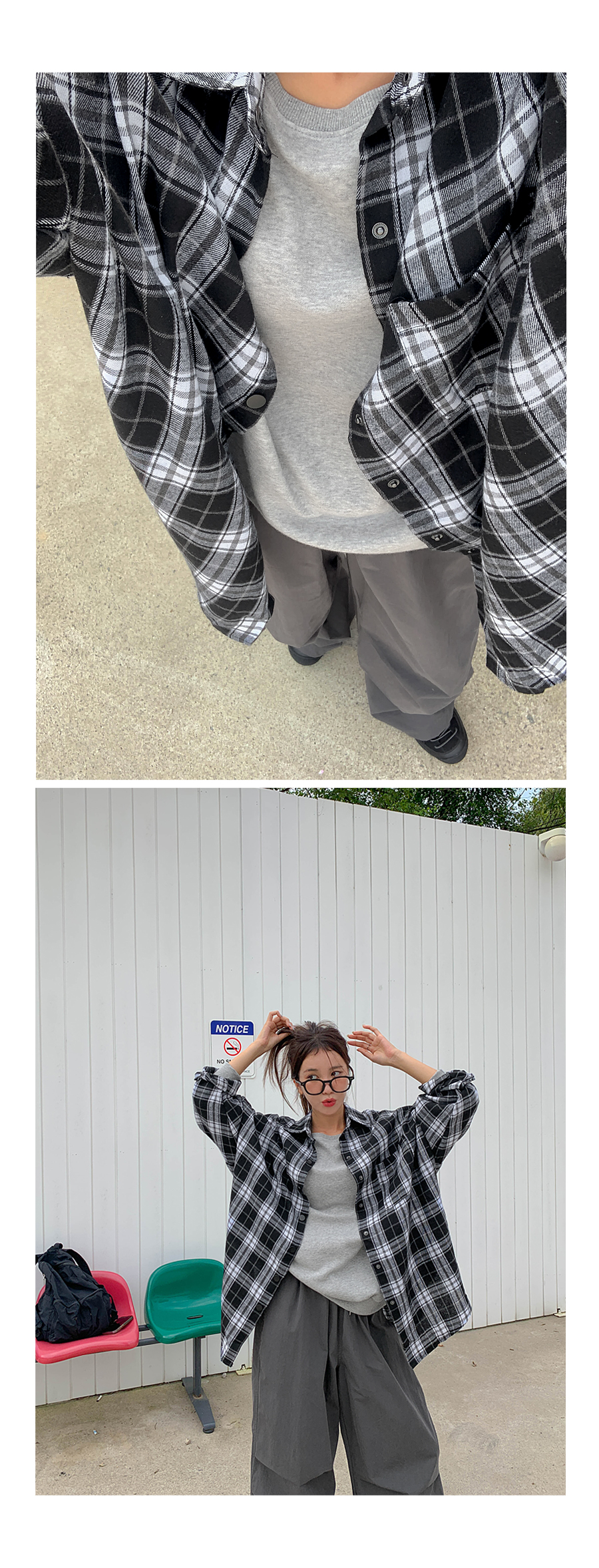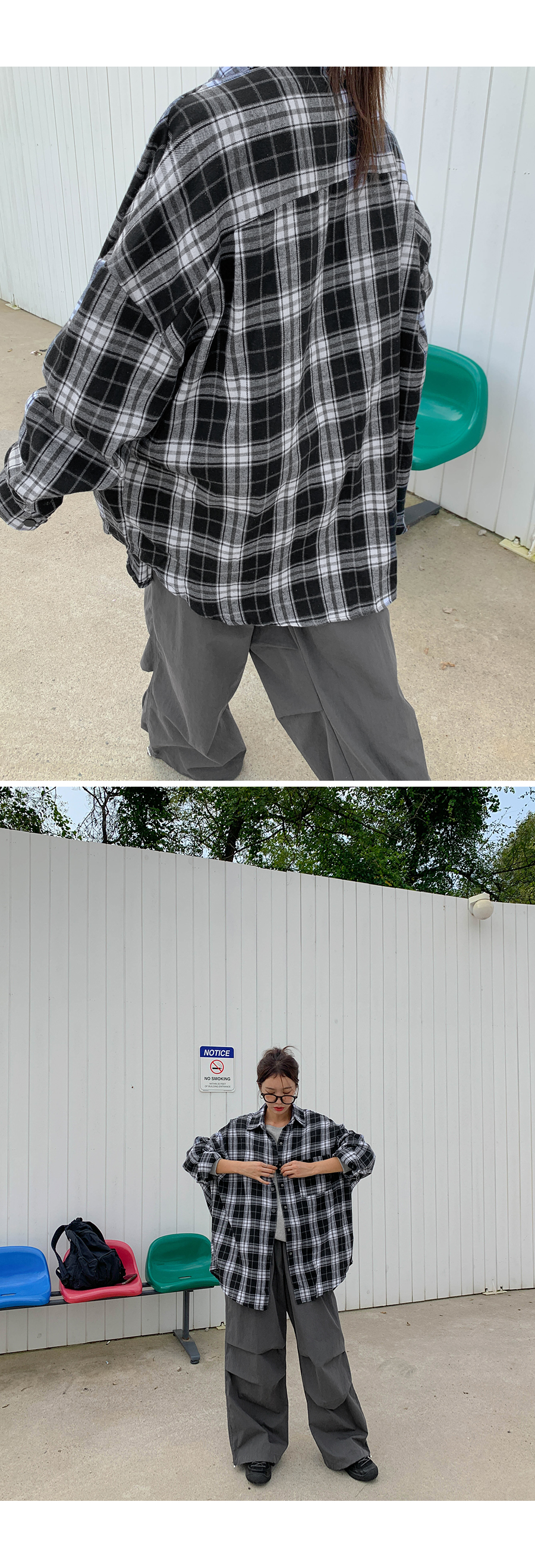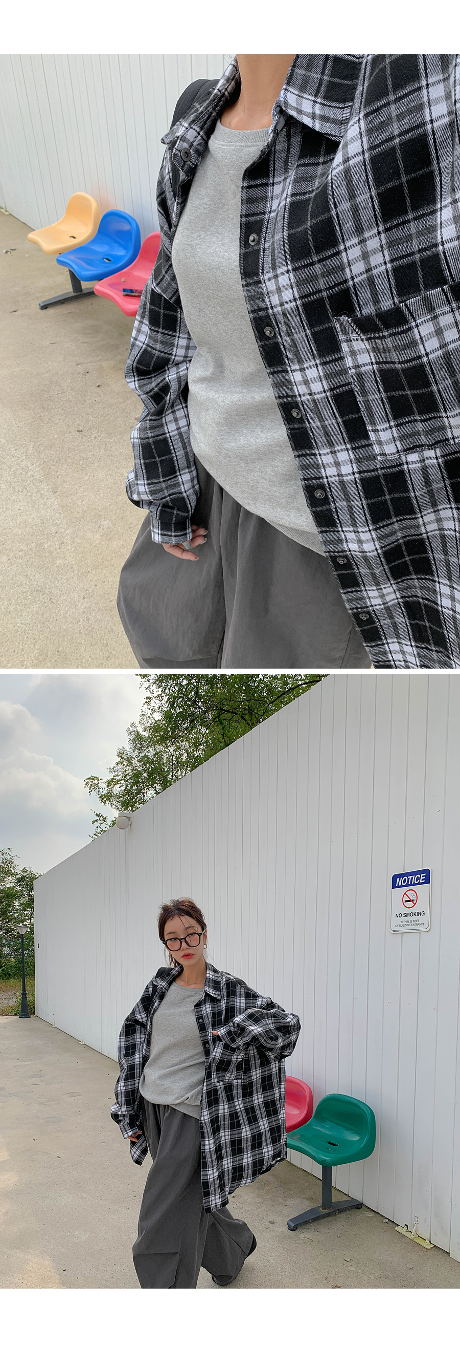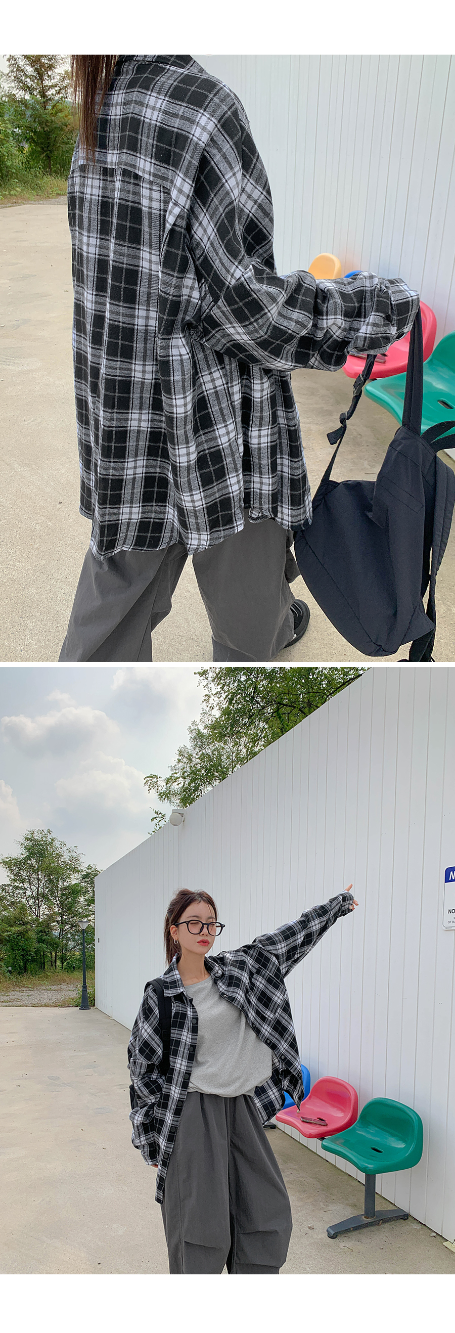 プープ オーバーフィット チェック ロングシャツ シャツ