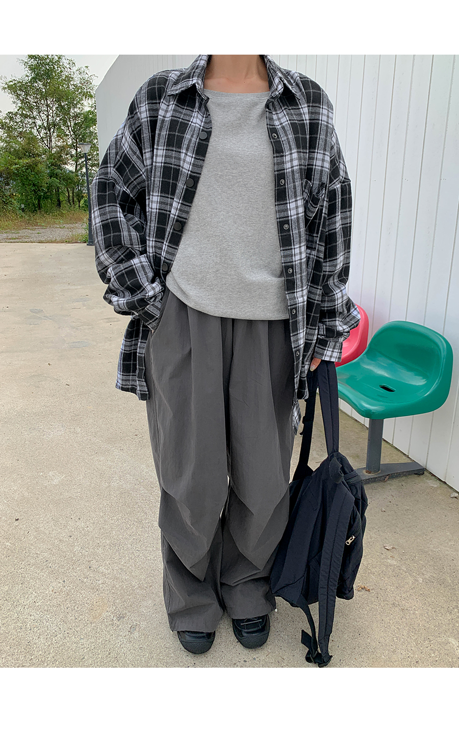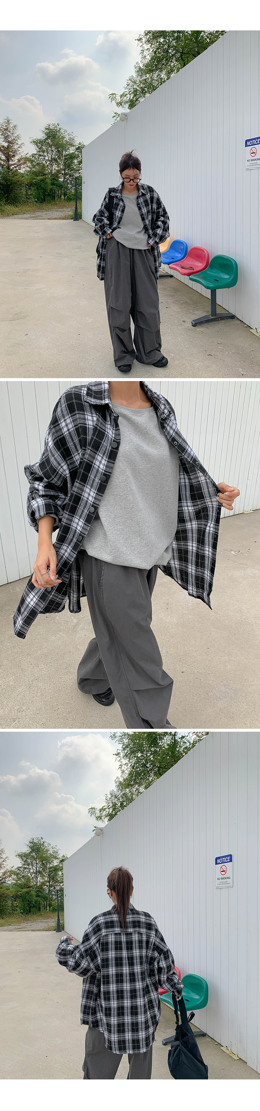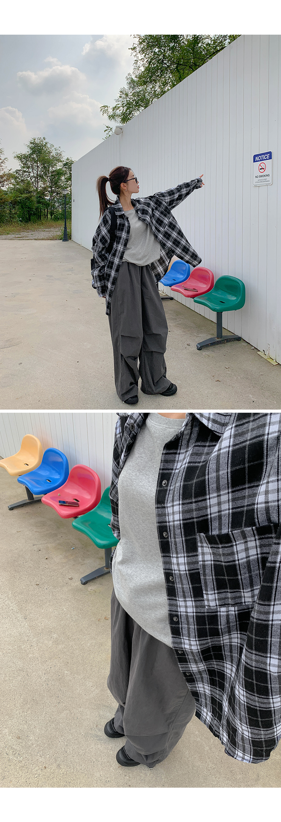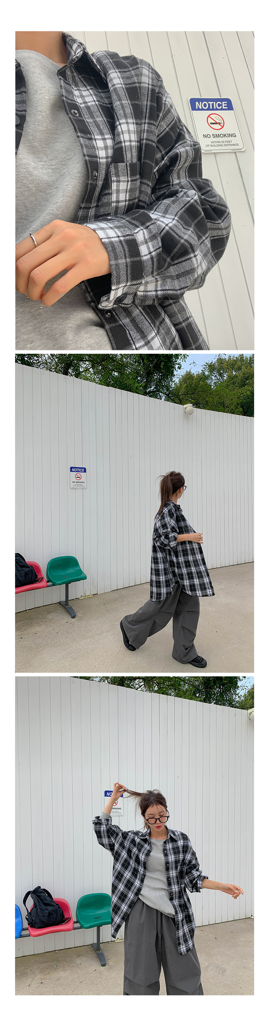 プープ オーバーフィット チェック ロングシャツ シャツ