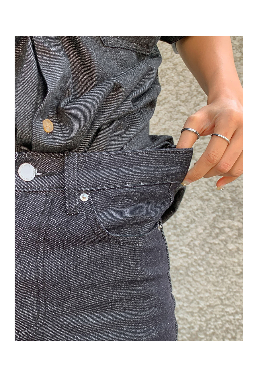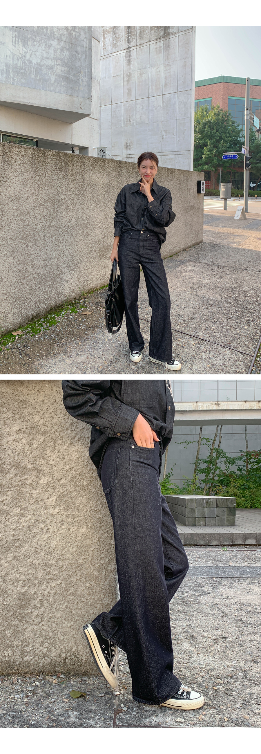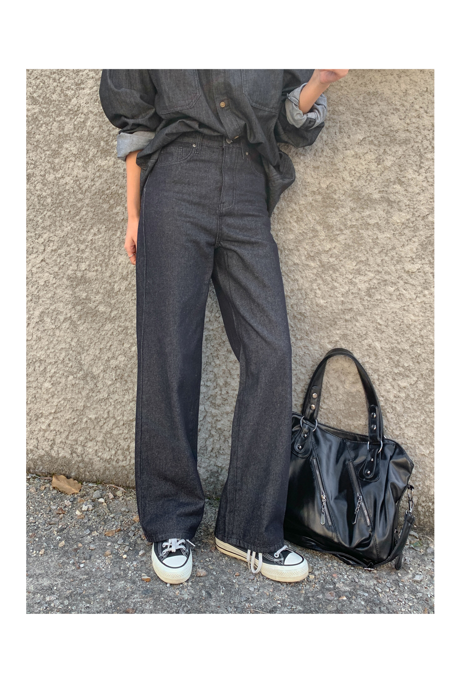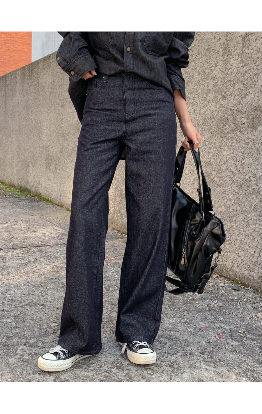 ロイコデニムバンディングストレートワイドパンツ(ショット/基本/ロングver)