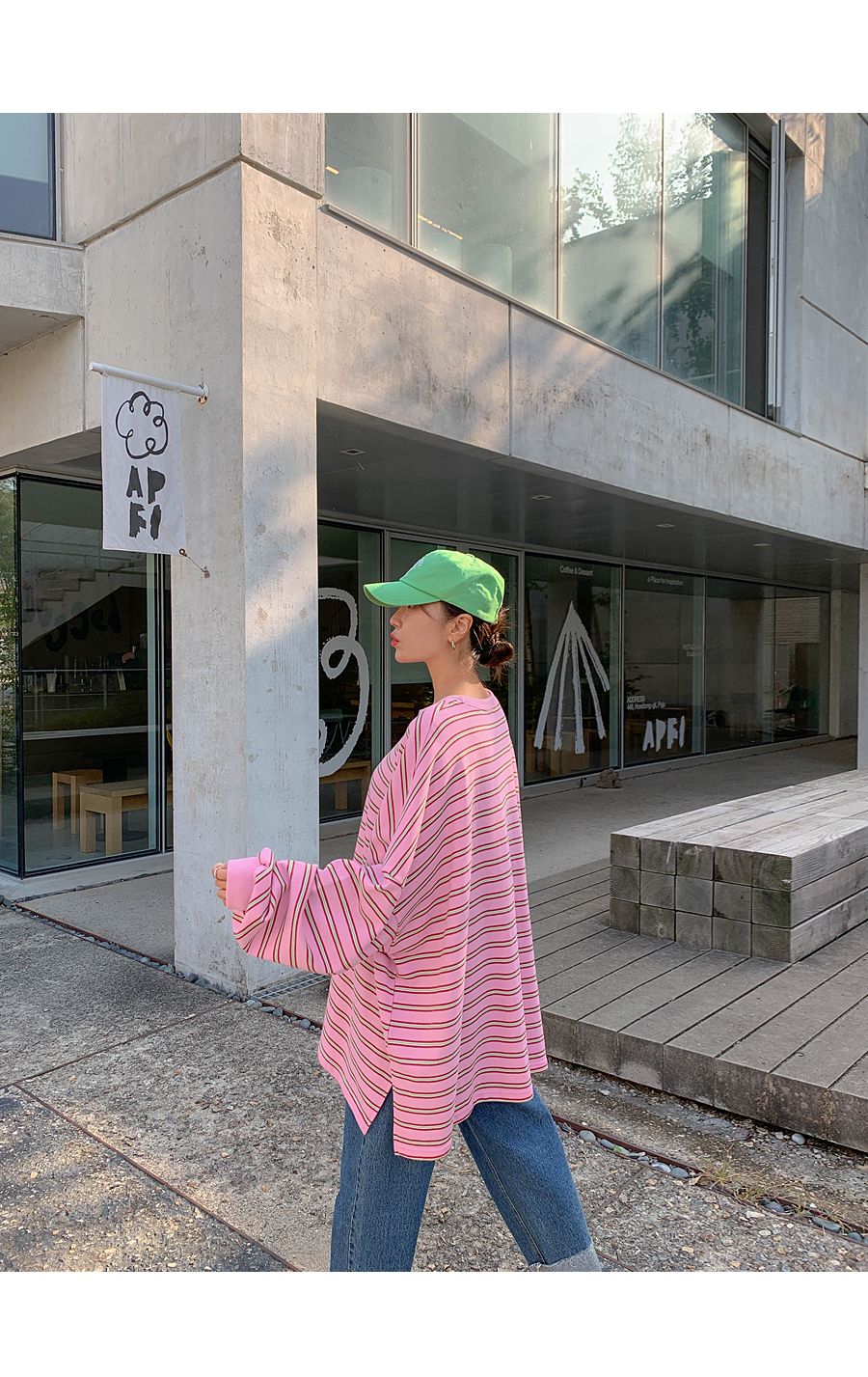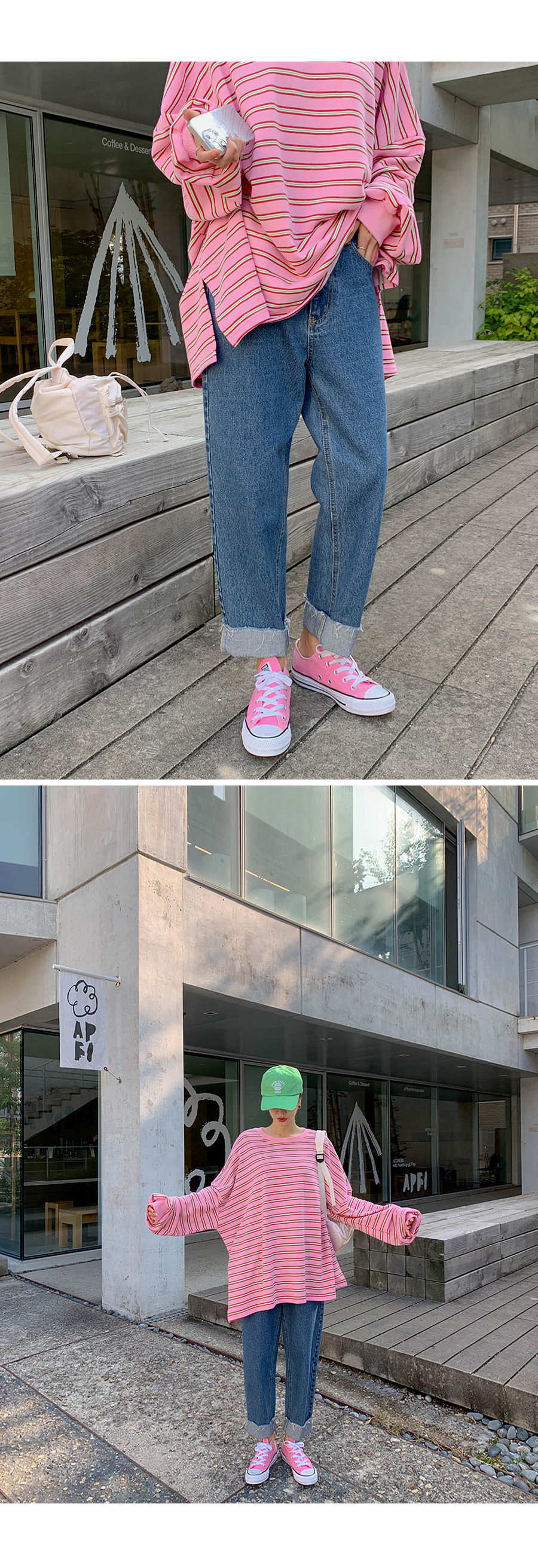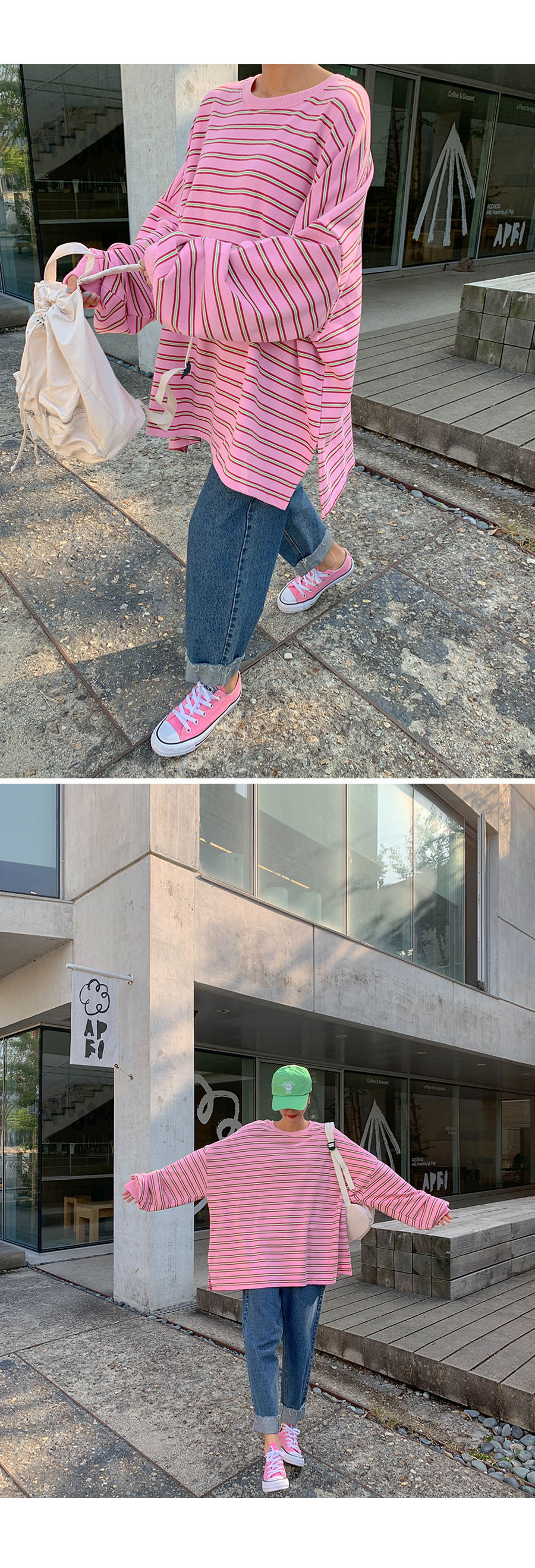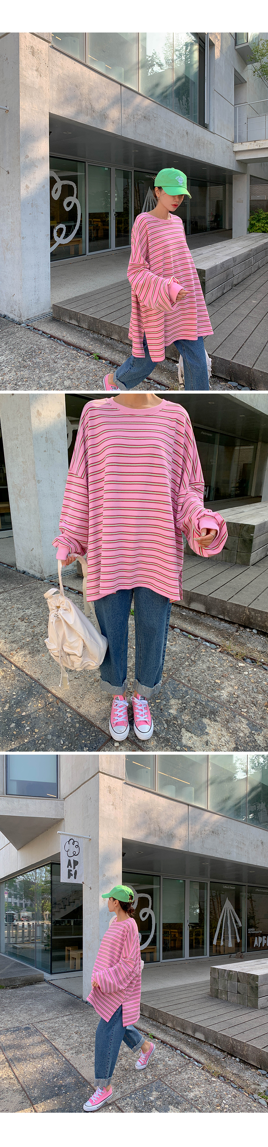 ミコ オーバーフィット ダンガラ配色 長袖 ロングTシャツ