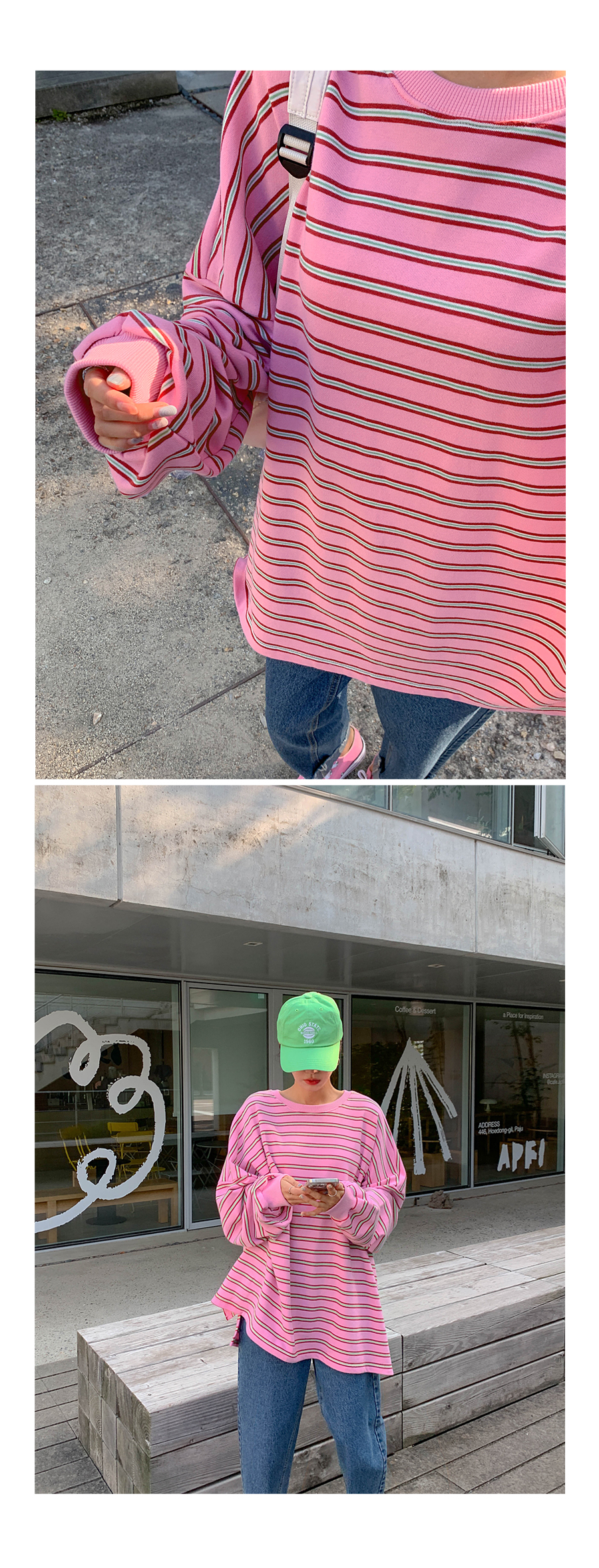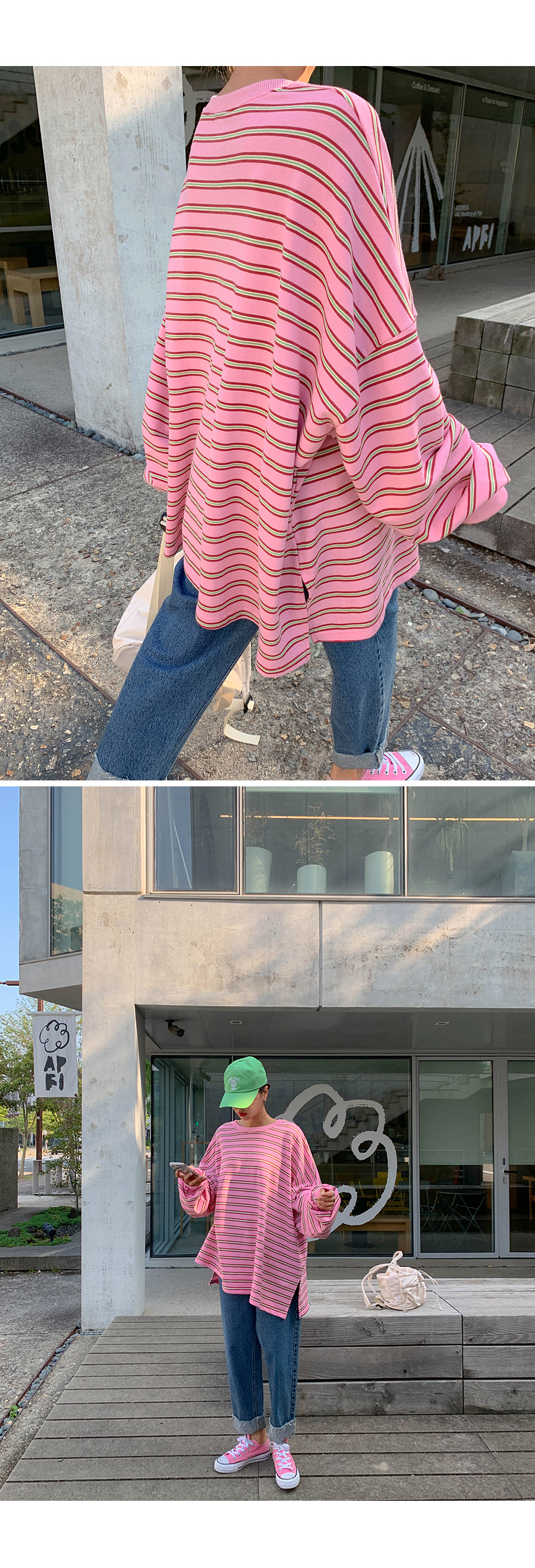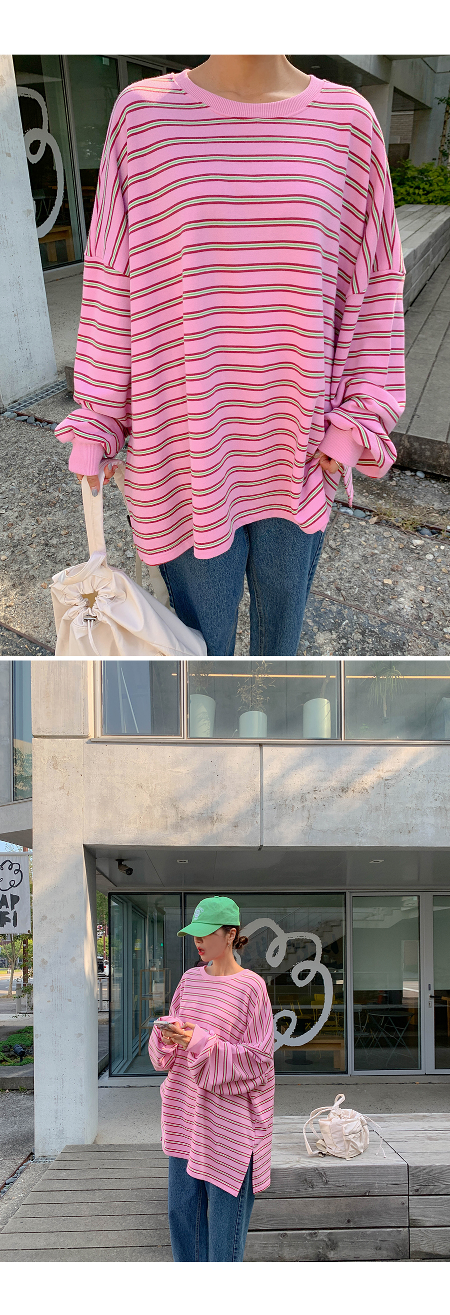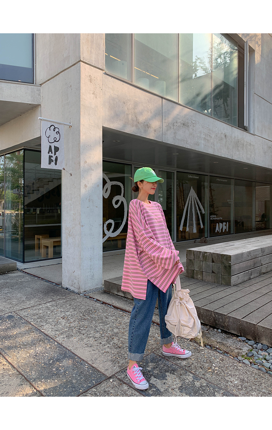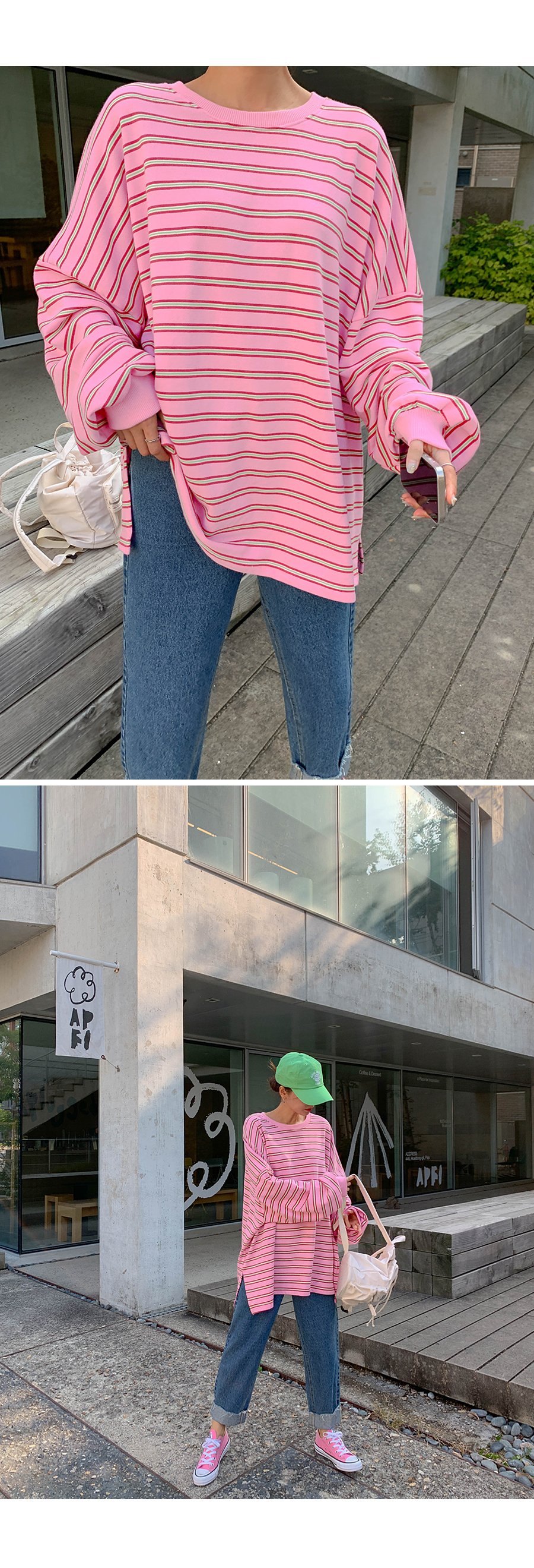 ミコ オーバーフィット ダンガラ配色 長袖 ロングTシャツ