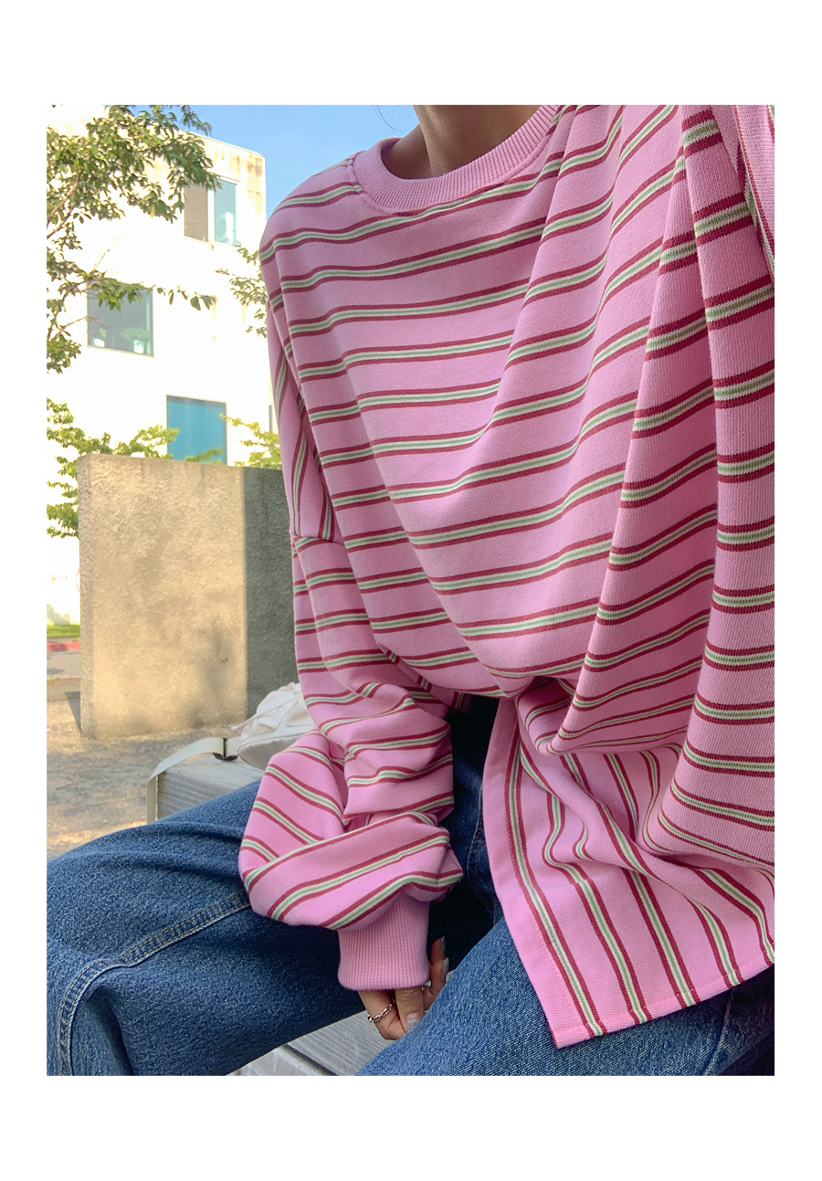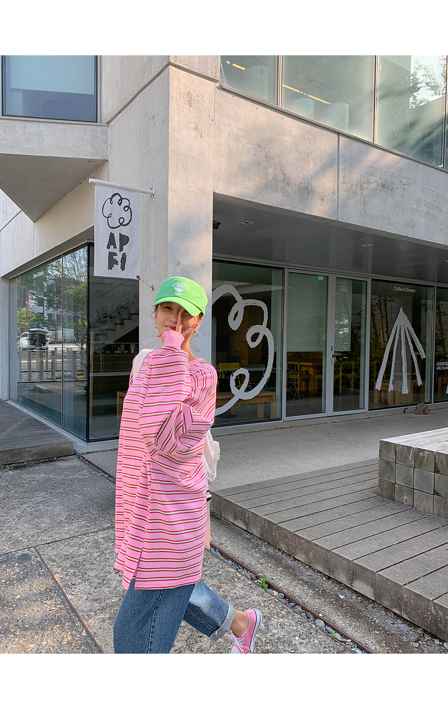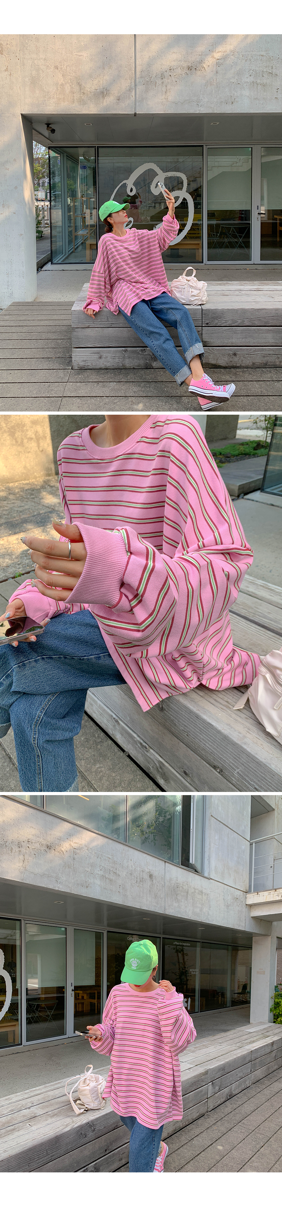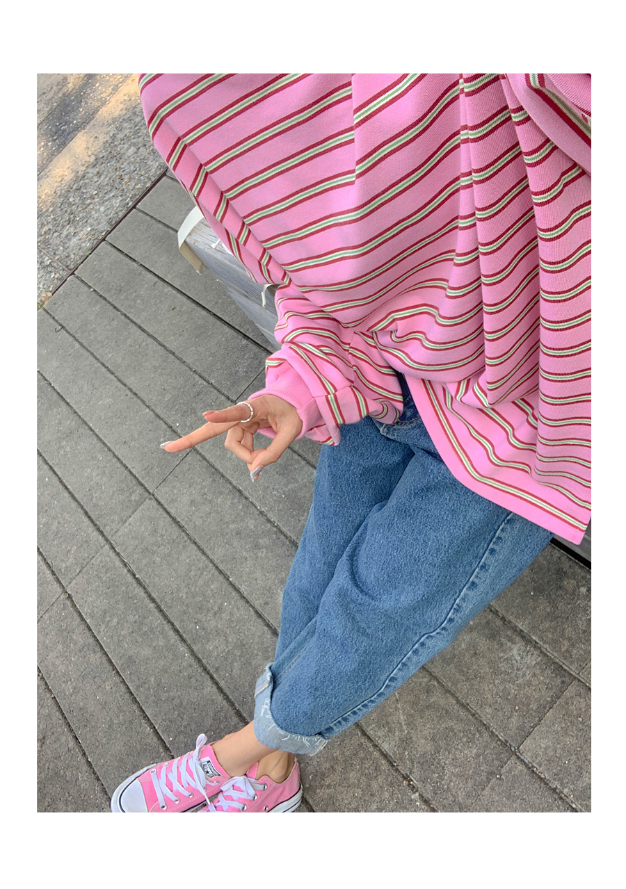 ミコ オーバーフィット ダンガラ配色 長袖 ロングTシャツ