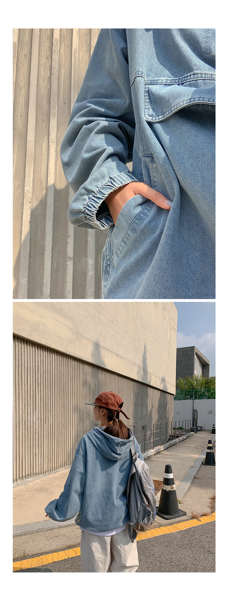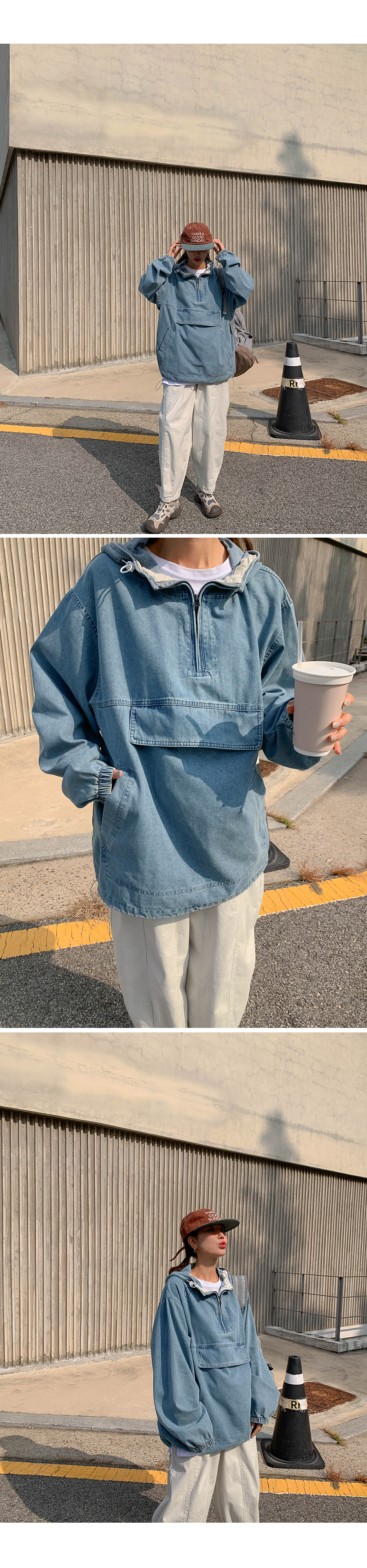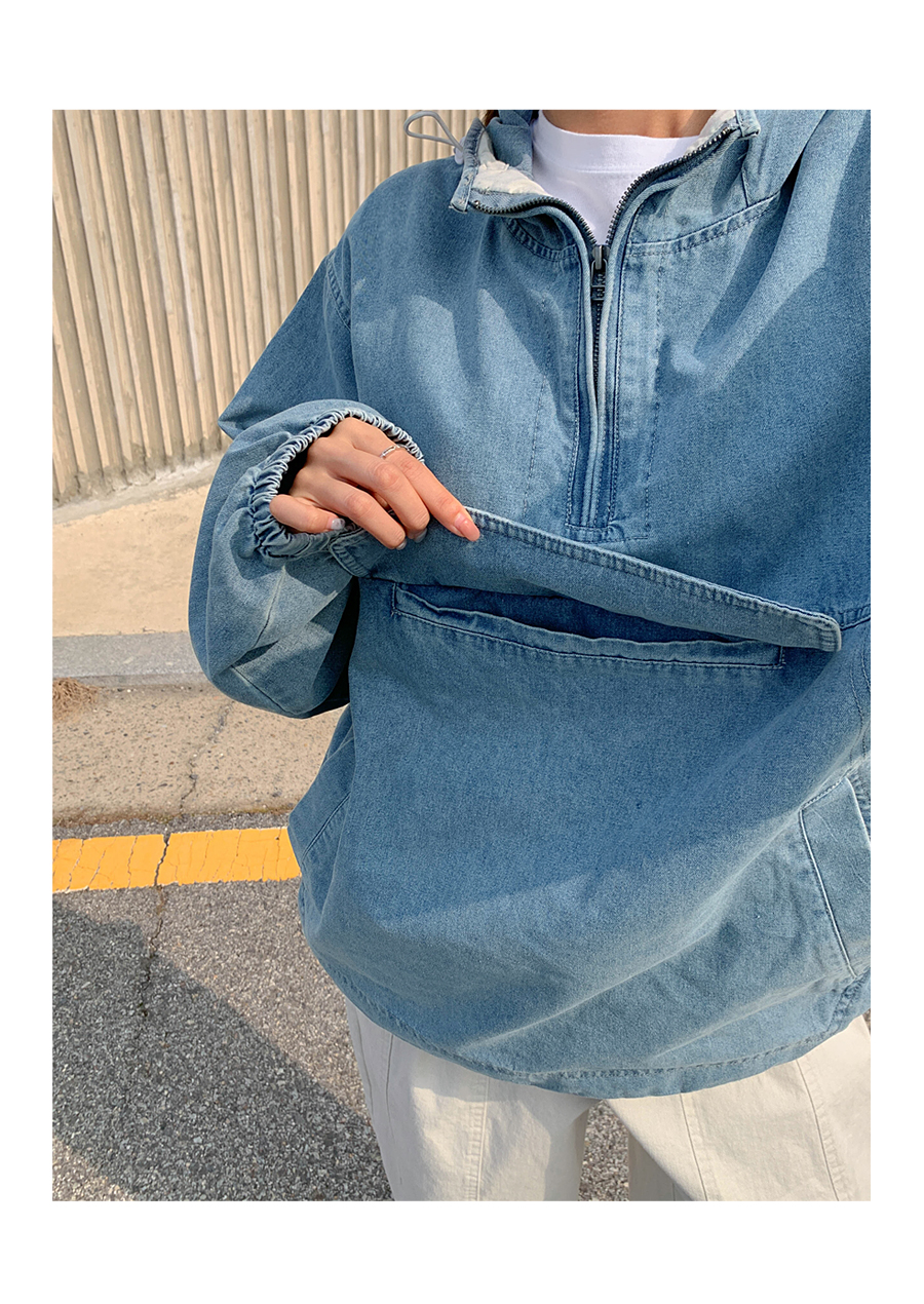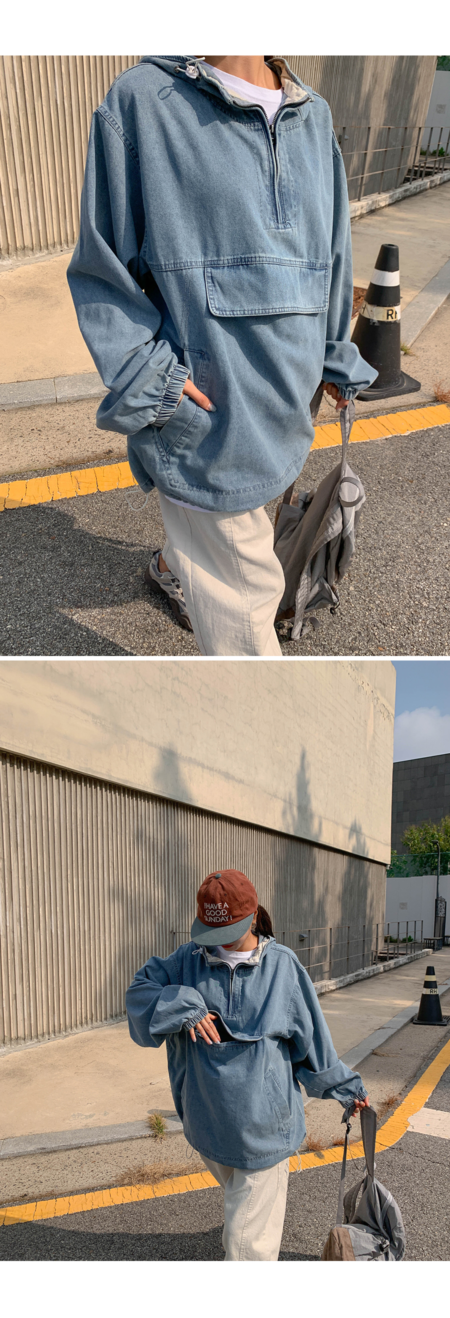 [男女共用]ネタウォッシュドポケットデニム反集業フードアノラック