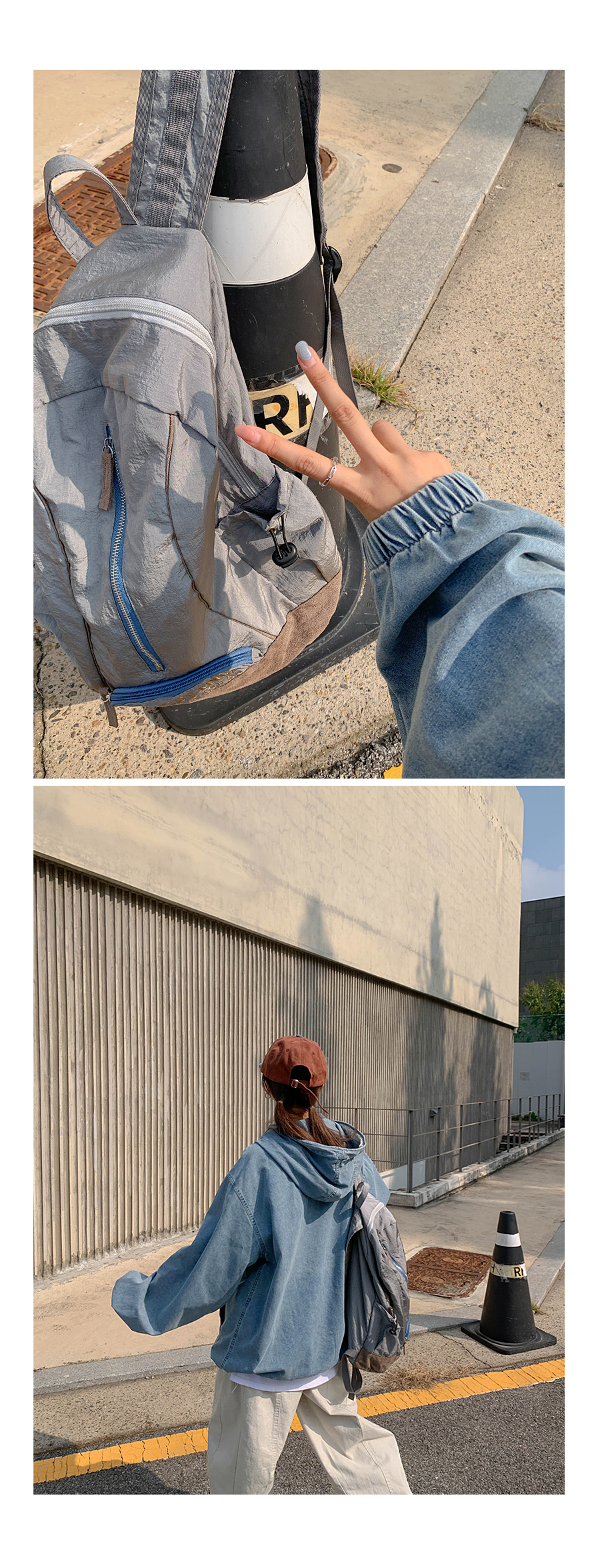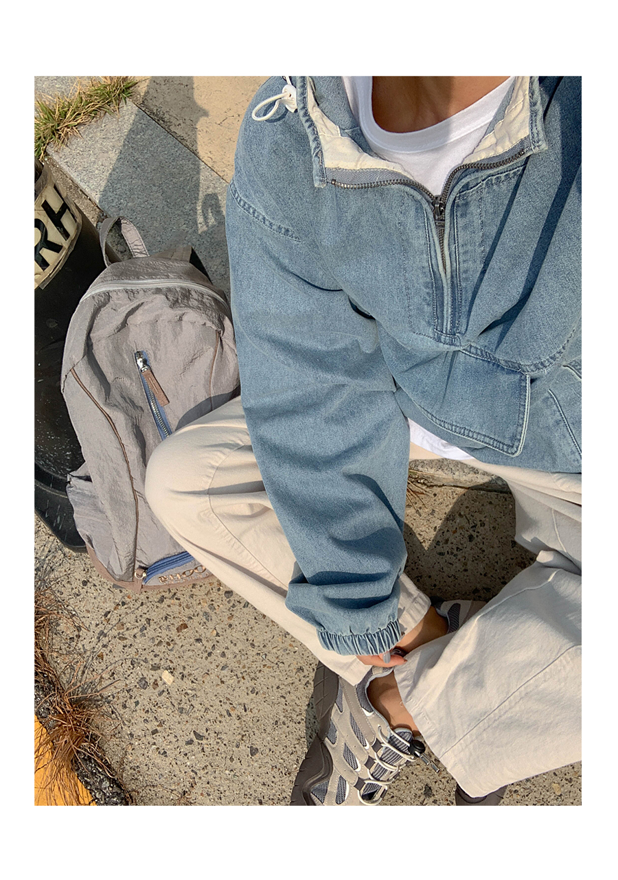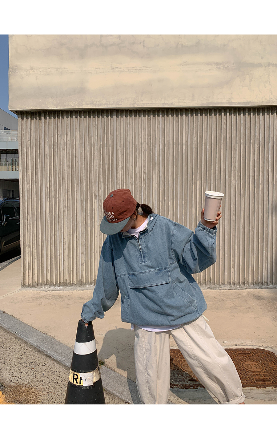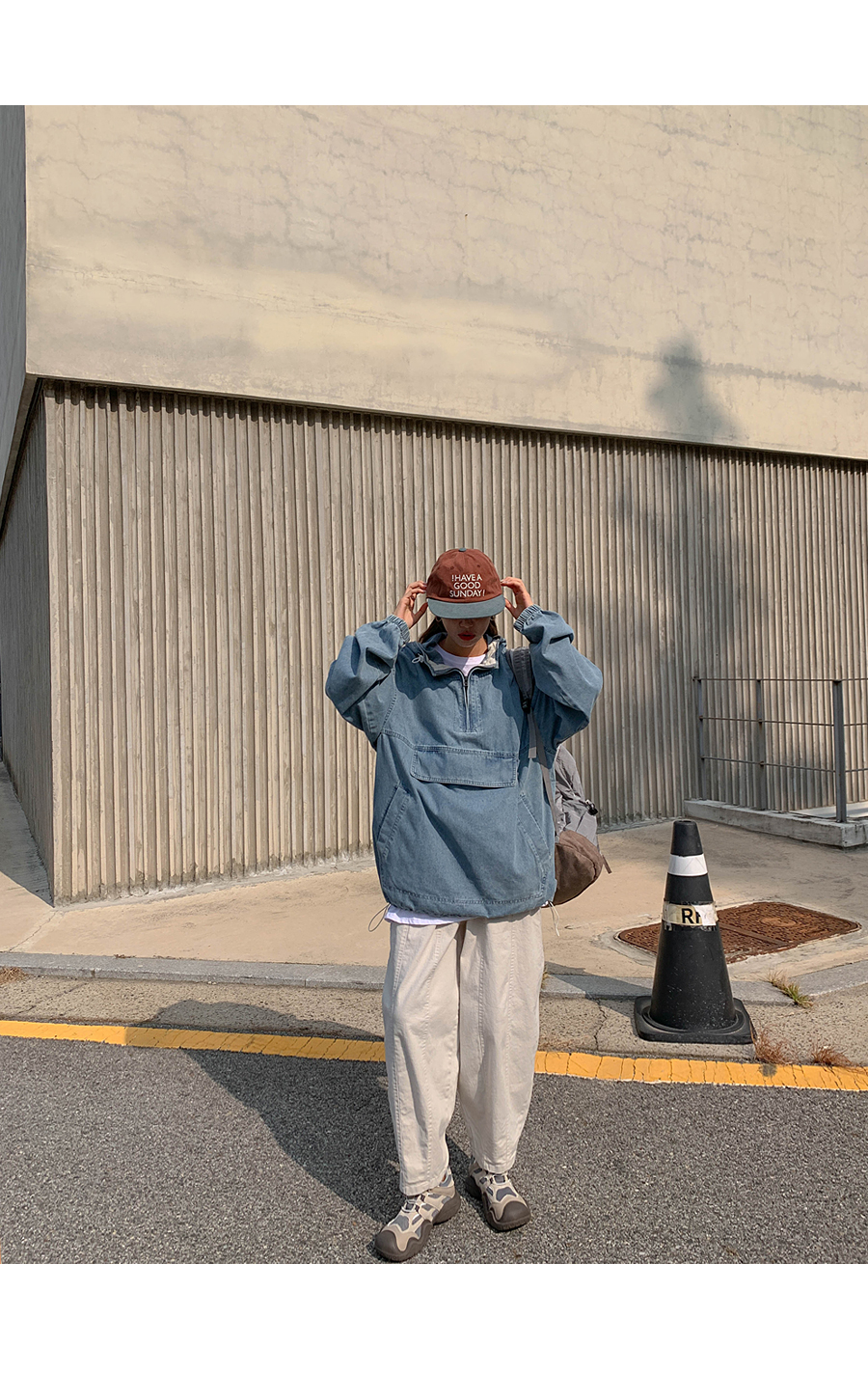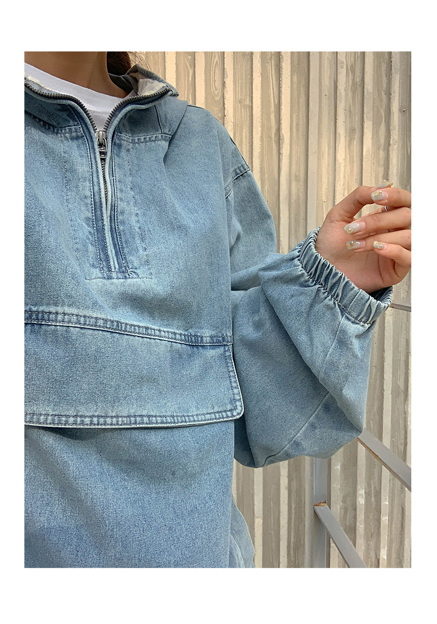 [男女共用]ネタウォッシュドポケットデニム反集業フードアノラック