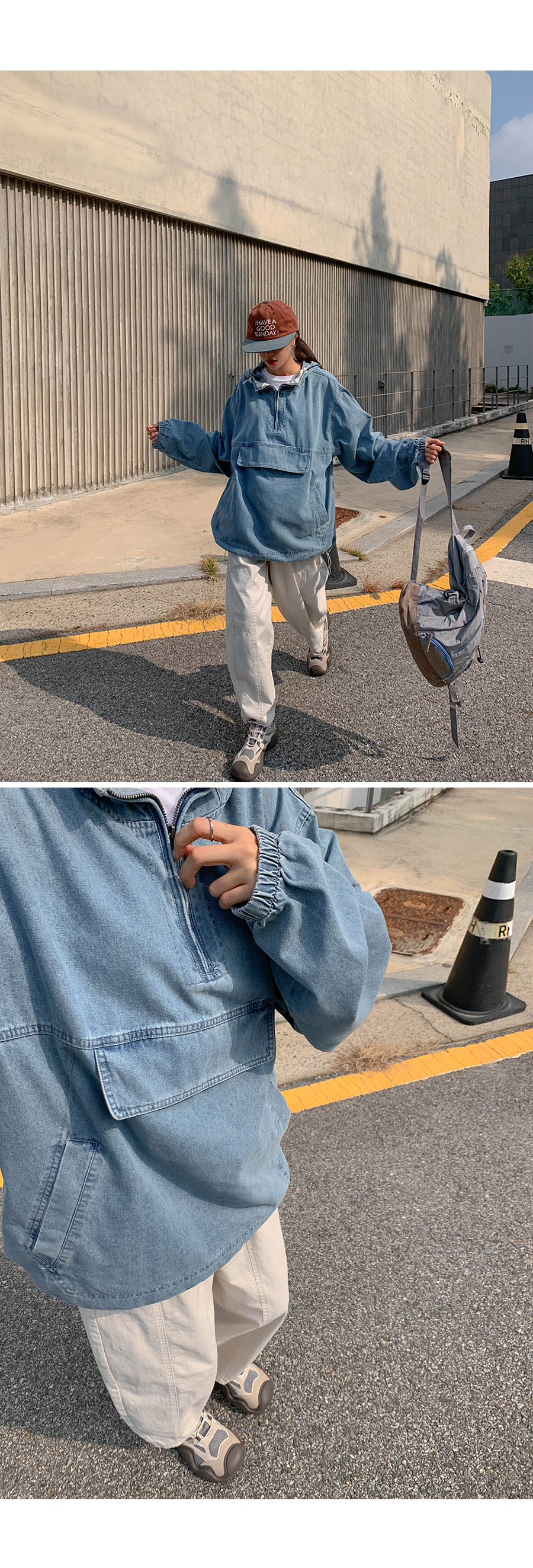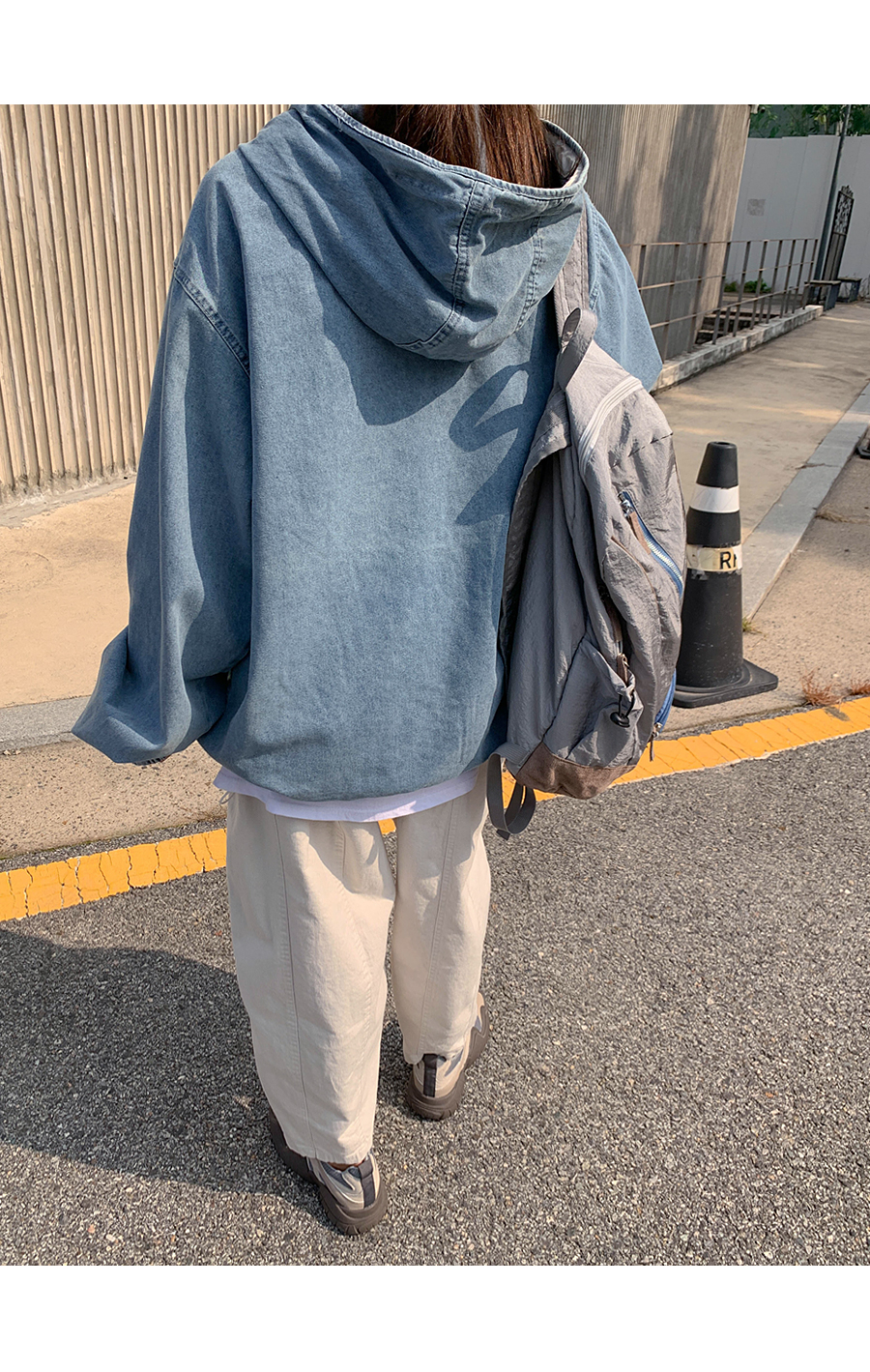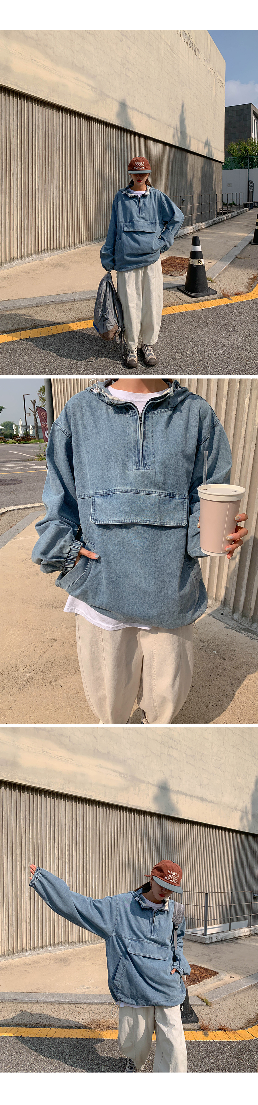 [男女共用]ネタウォッシュドポケットデニム反集業フードアノラック