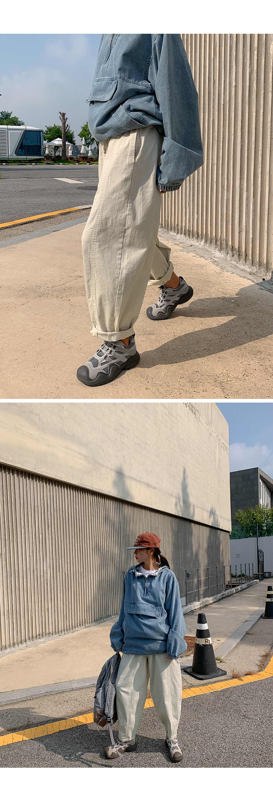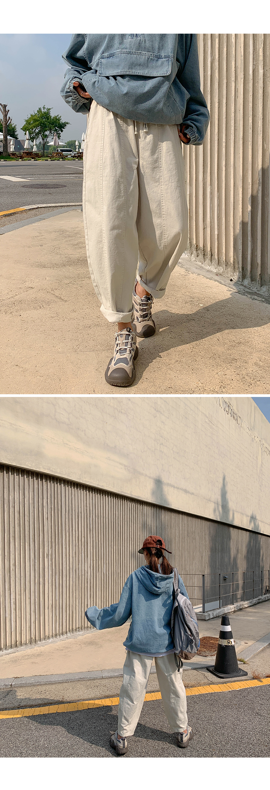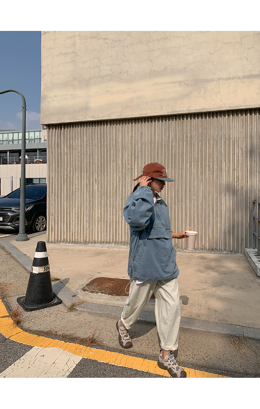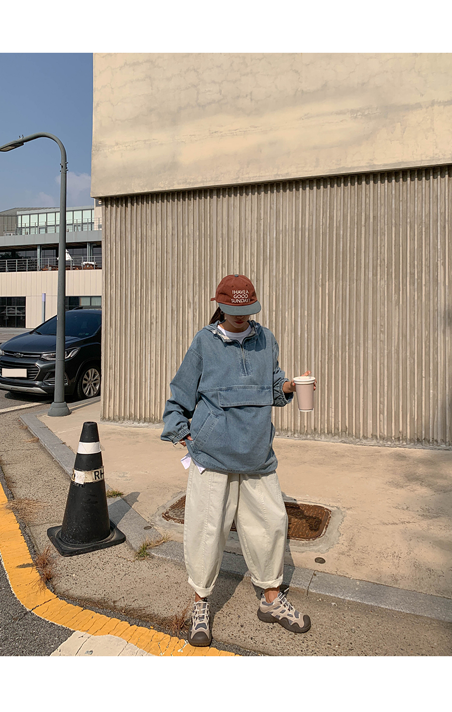 [男女共用]ネタウォッシュドポケットデニム反集業フードアノラック