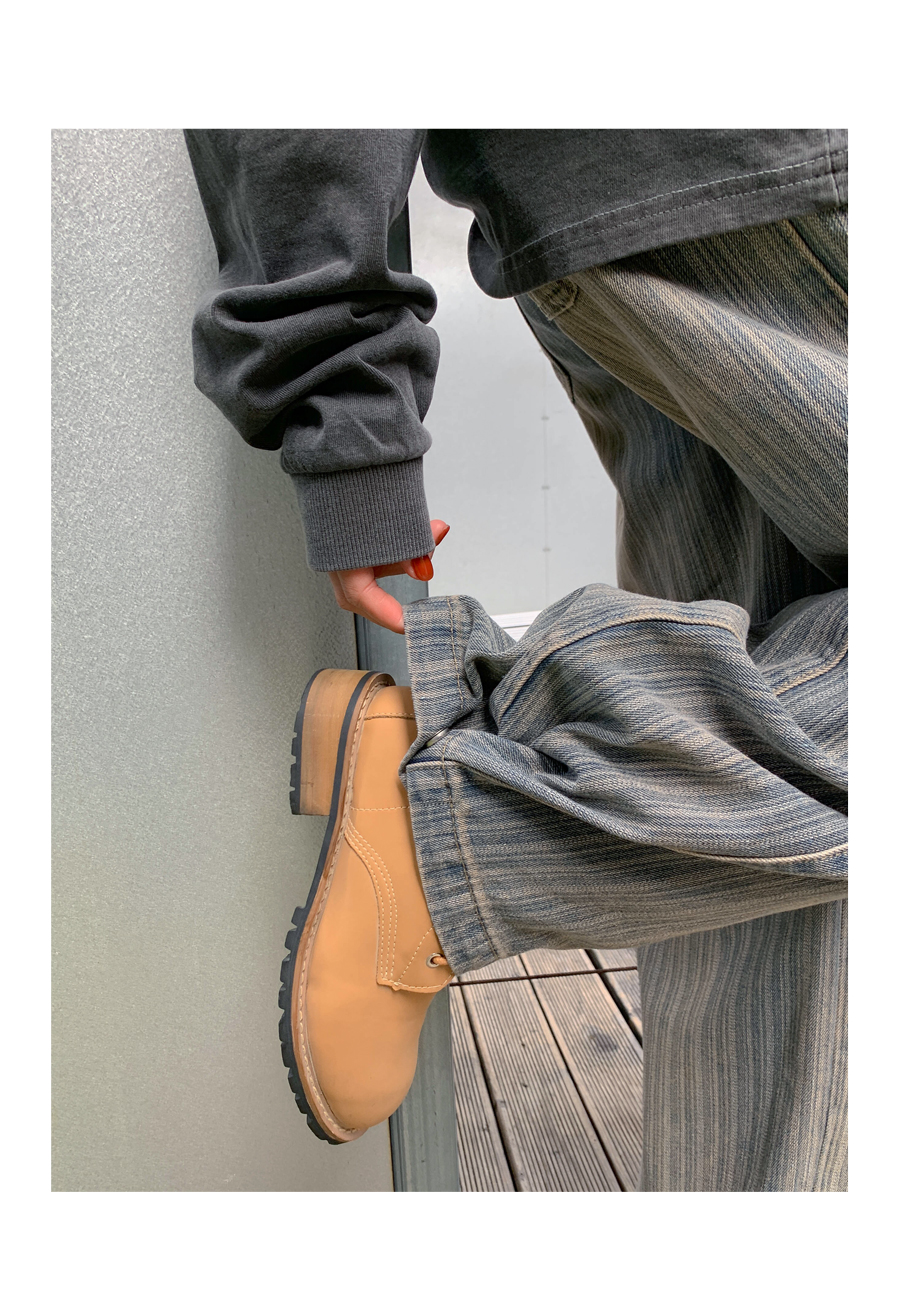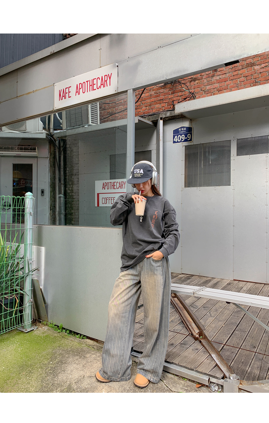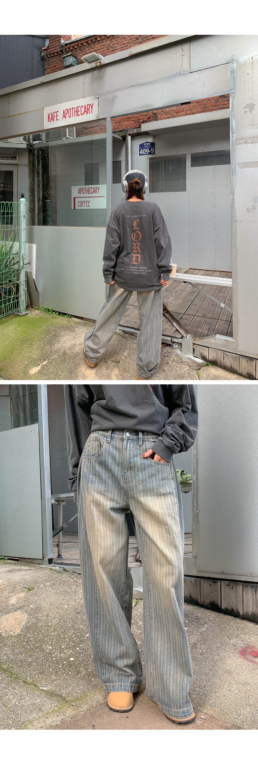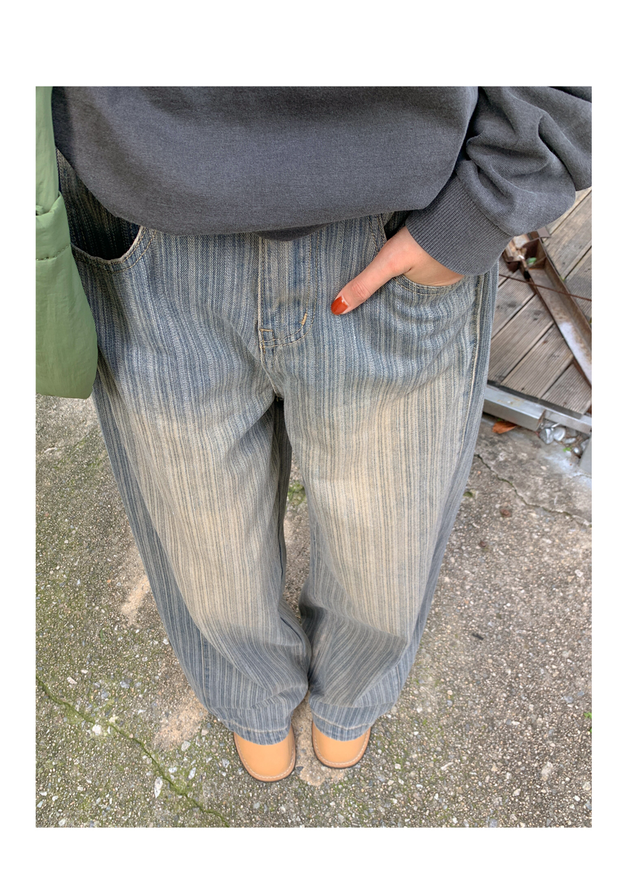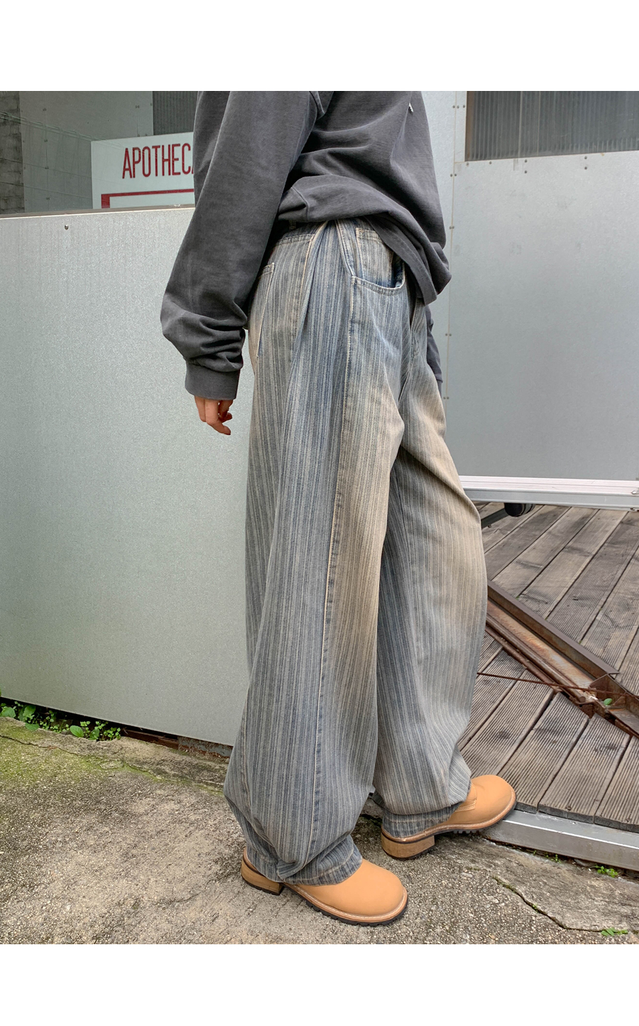 モカンストライプピンタックデニムバンディングワイドパンツ(ショット/基本/ロングver)
