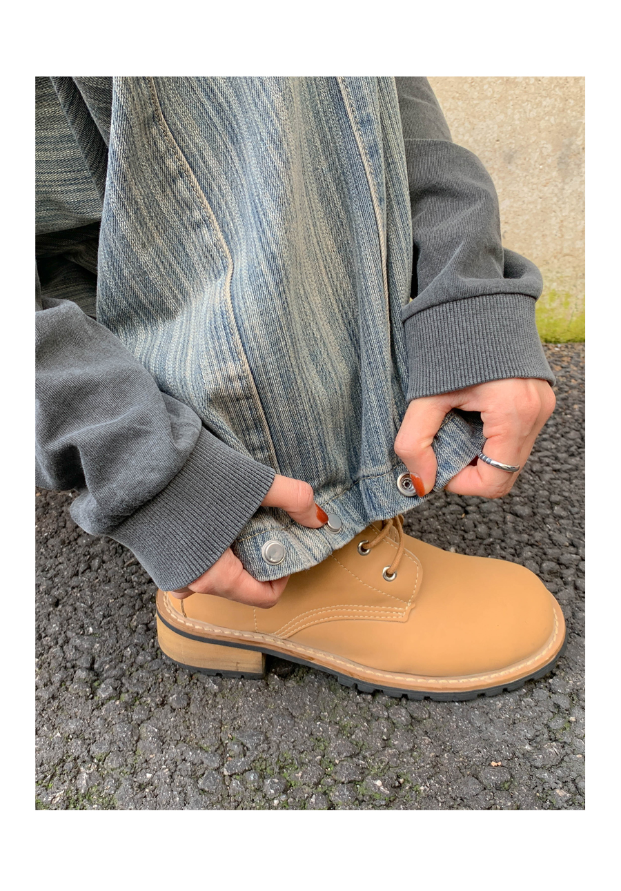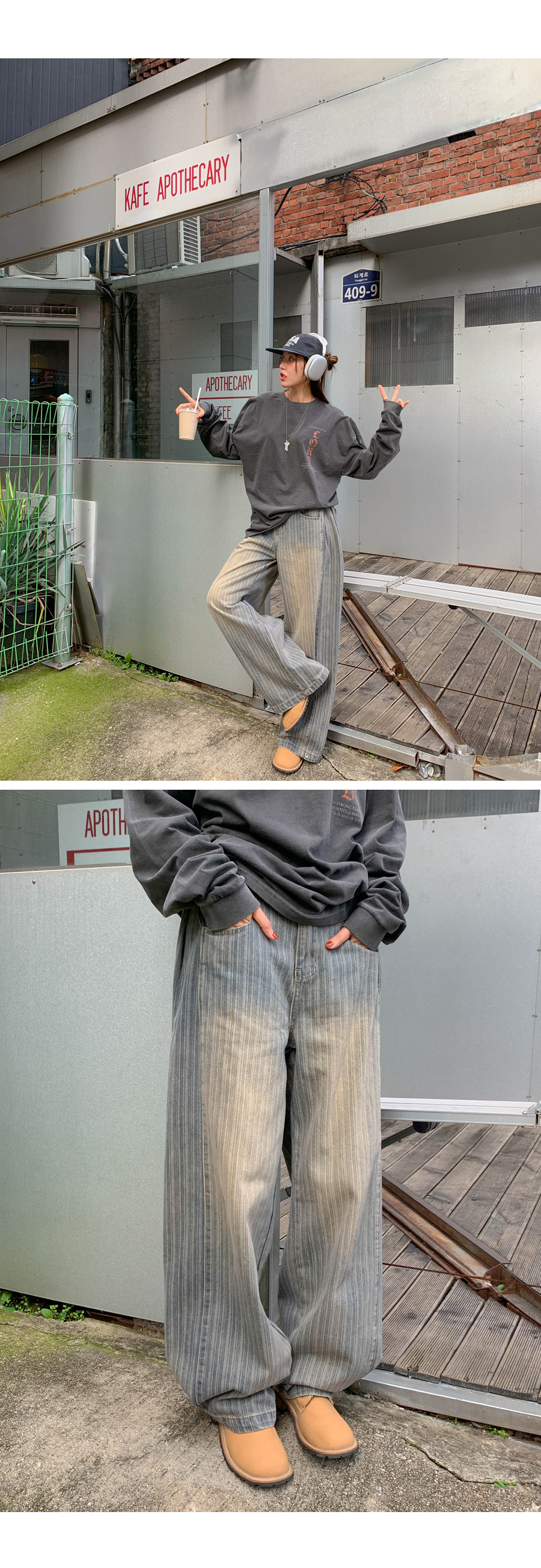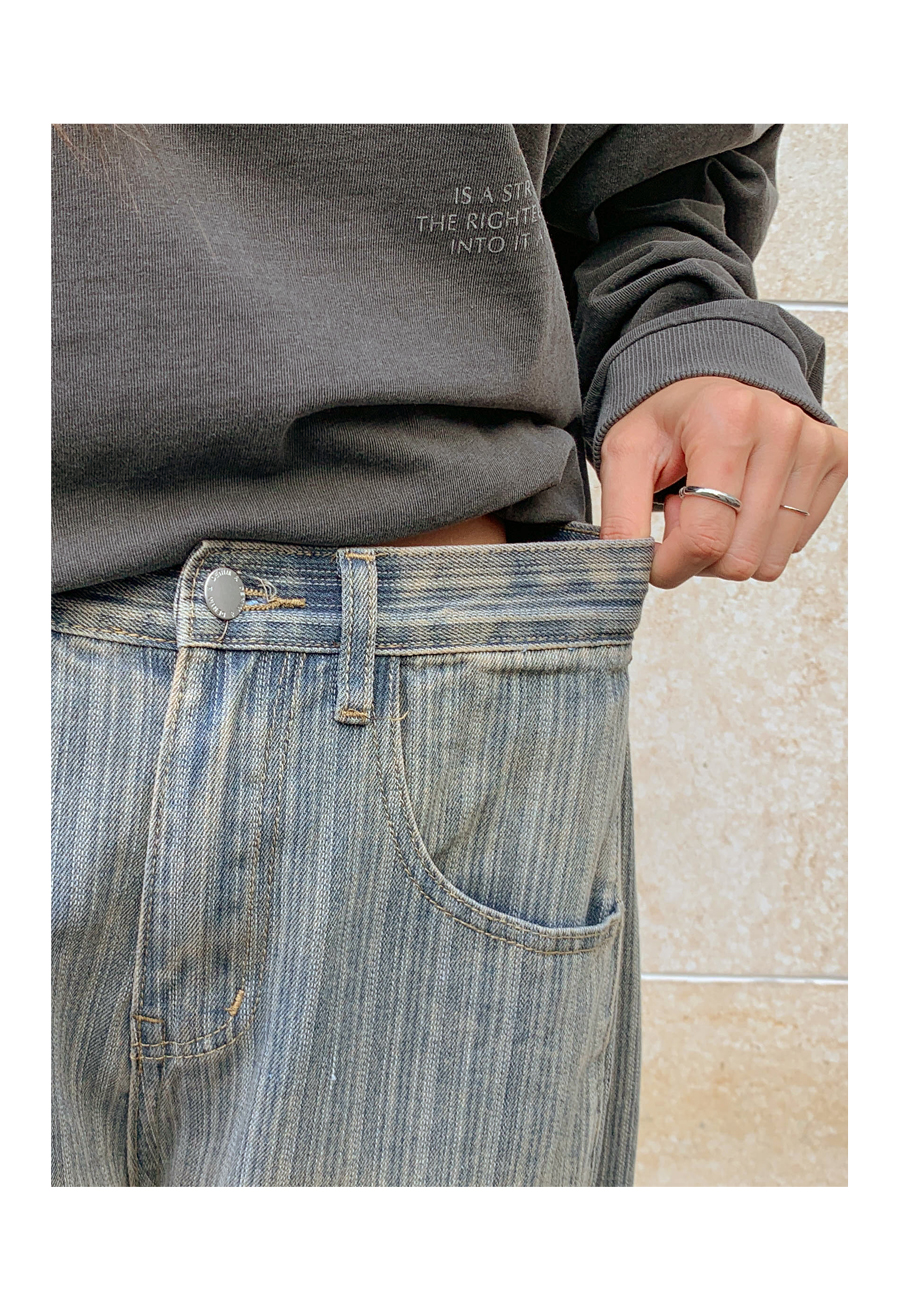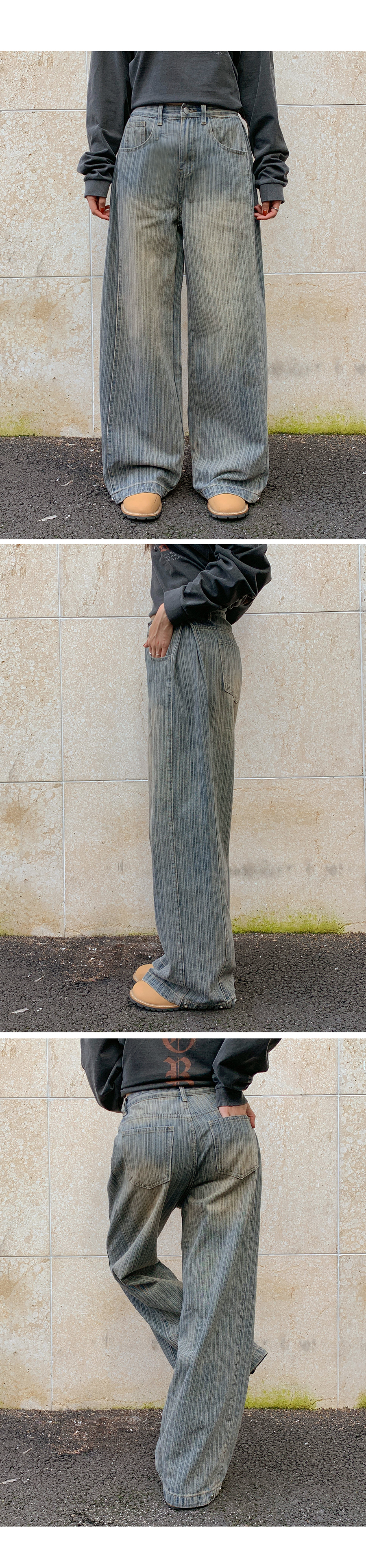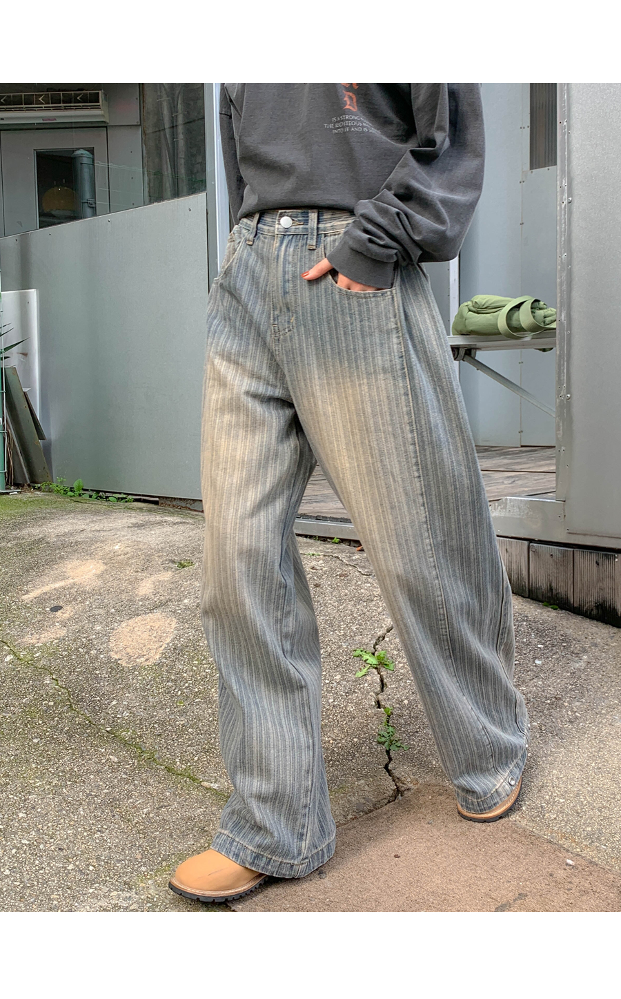 モカンストライプピンタックデニムバンディングワイドパンツ(ショット/基本/ロングver)